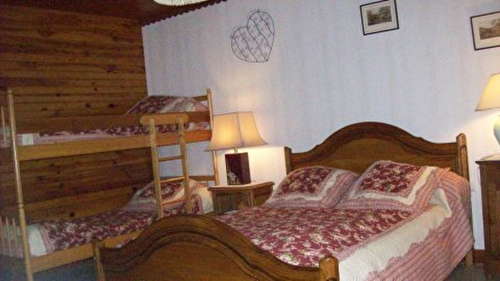 The second bedroom has 1 double bed and 1 bunk bed.
