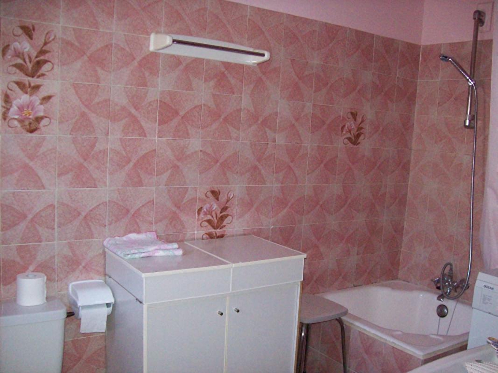 > a bathroom with integrated toilet. A second toilet is located on the ground floor.