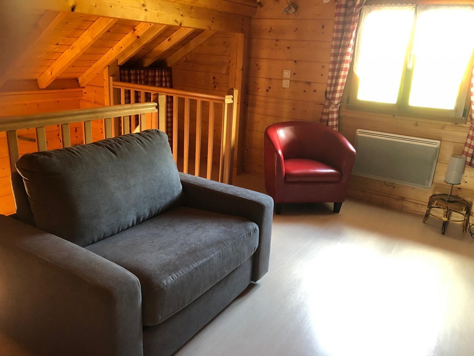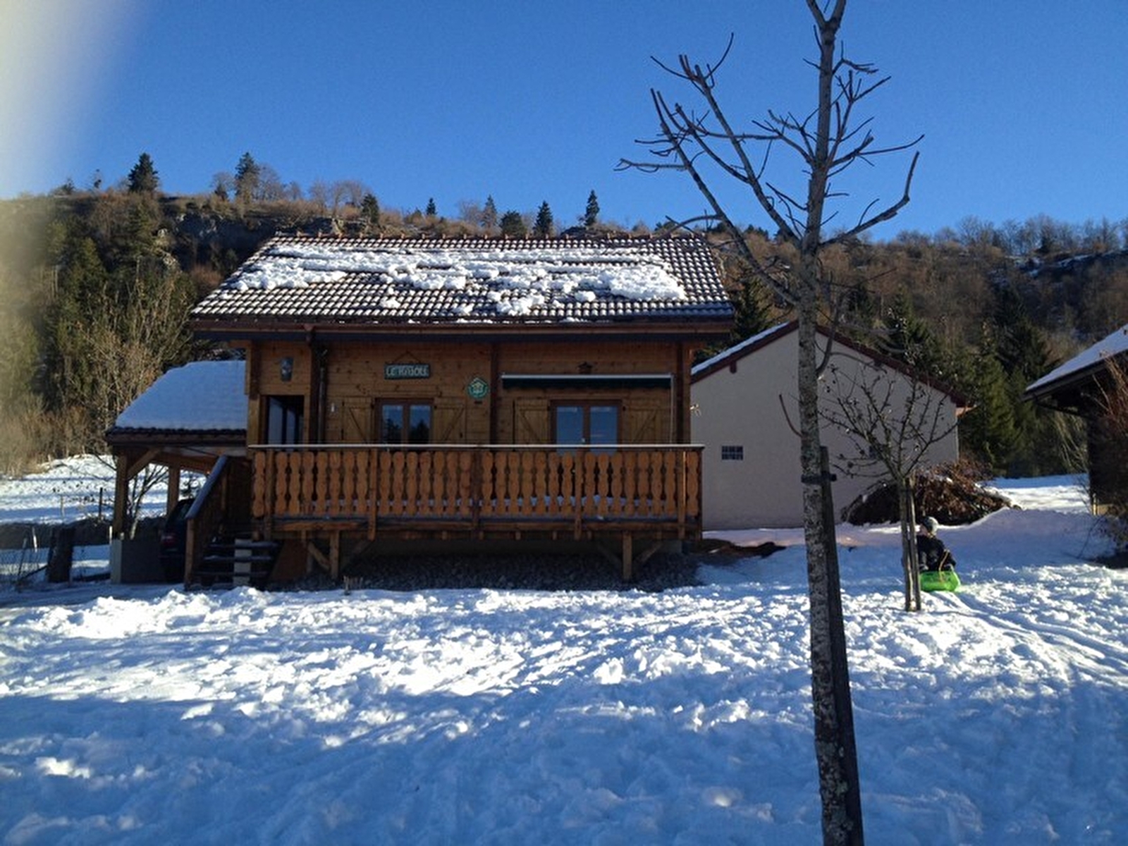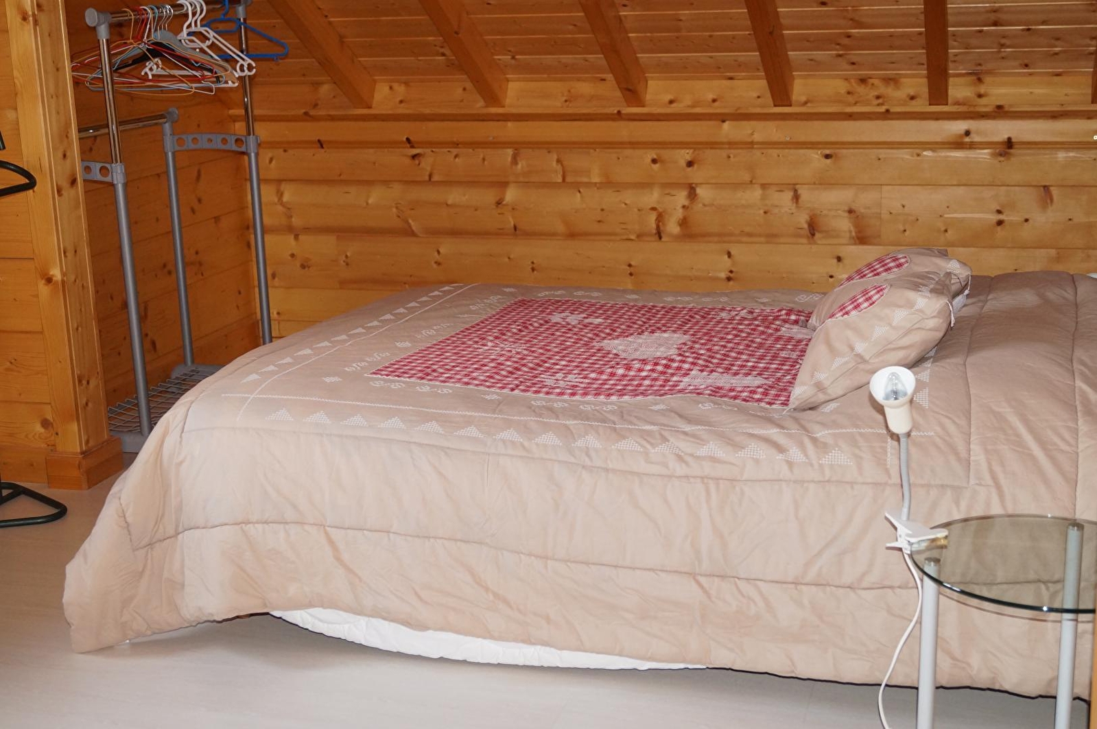 Halway of the small village, detached nice chalet, new. Fitted kitchen, dining-room with stove, bathroom, bedroom 1: 1 double bed. On the first floor: living-room on the mezzanine with DVD player, plays, sofa bed, bedroom 2: 1 double bed + 1 cot. Electric heating, terrace, garden furniture, barbecue, swing. Shelter for car, adjacent open land. Baby's facilities. All charges included.