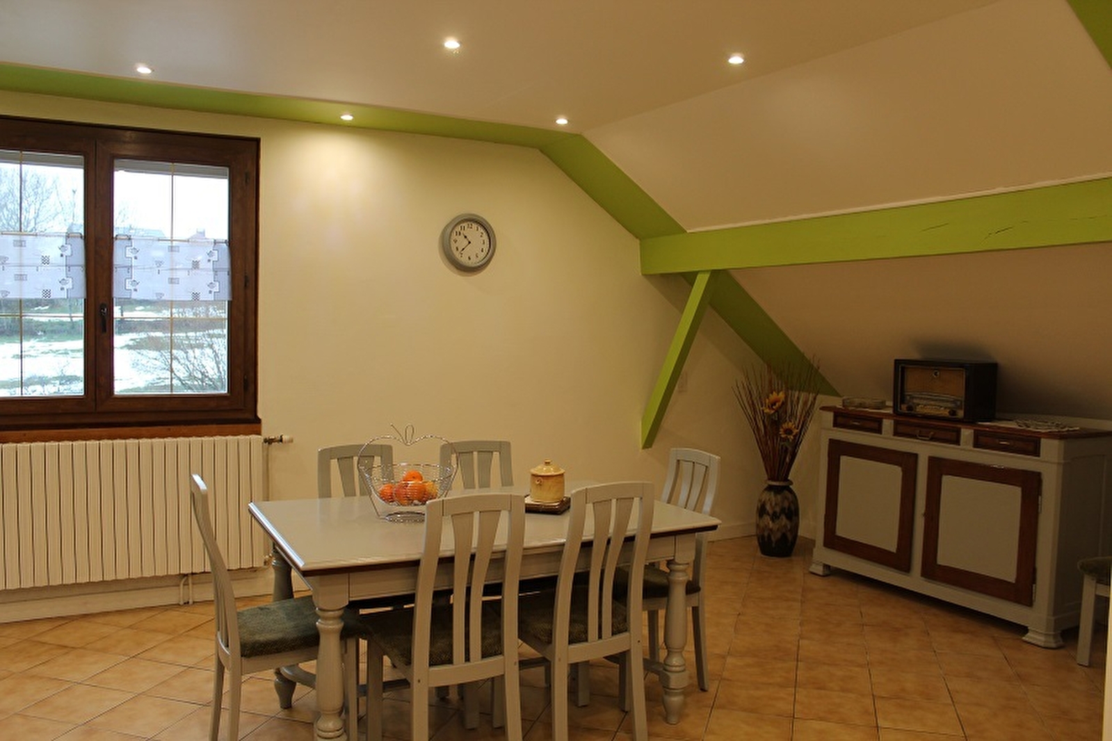 Ideally located for cross-country skiing and hiking enthusiasts, this flat on the first floor of the owners' house has a separate entrance and comprises a kitchen opening onto the living room, a sitting area, 2 bedrooms with 1 double bed, 1 bedroom with a double bed (160*200), a shower room and a separate toilet. Adjoining plot of land, terrace area with garden furniture and barbecue. Collective pelet boiler.