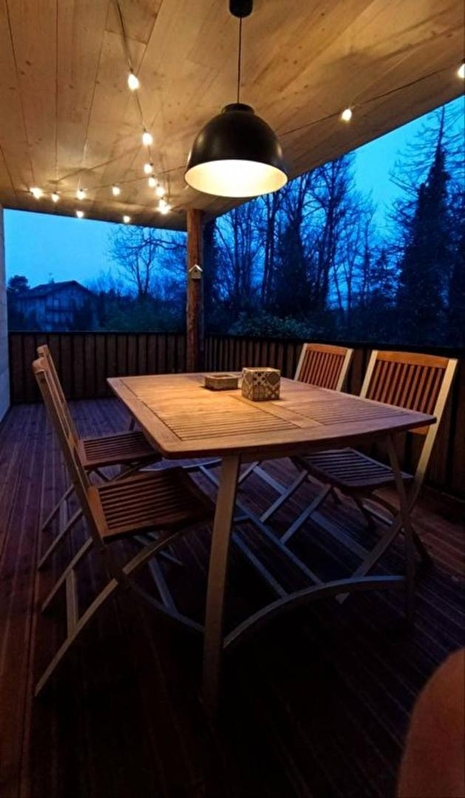 Cosy, all-wood 1st-floor flat with 17 m² terrace (table, deckchairs and barbecue) overlooking the garden and balcony. An ideal, cosy spot for a short or long stay! Located in a stone house in the centre of Clairvaux les Lacs, it comprises a living room with a fully-equipped kitchen, a dining area and a lounge with TV and an ultra-comfortable sofa bed specially chosen for a 140 x 190 daily bed that folds and unfolds by itself in 2 seconds (new Rapido system), requiring no effort at all! A bedroom with a view over the countryside, comprising 2 single beds 90 x 200 that can also be adapted to sleep a double 180 x 200, with direct access to the terrace. The rental includes all bedding (protectors, fitted sheets, pillowcases, duvet covers). Beds made up on arrival. Heating and electricity are included in the price. Compulsory cleaning charge is extra. Public parking available at the foot of the residence or in a car park 50 m away, shops 50 m away on foot and lake with beach 4 minutes away on foot. Lac de Clairvaux, with its landscaped beach and surrounding area, is a wonderful place to recharge your batteries! There are no fewer than 6 restaurants in this tourist town serving Jura culinary specialities. There are many sites and lakes to visit in Clairvaux and the surrounding area, including the wood village, the only one of its kind in France, the Hérisson waterfalls, Baume les Messieurs, Lake Chalain, Château Chalon, the caves, the Haut Jura regional park, the Langouette gorges, Lake Vouglans, etc. You'll be enchanted by the many hiking trails in the forest or beside the lakes! You'll also find bike hire (including electric bikes) and a host of outdoor activities such as canoeing, kayaking, tree climbing, water games, horse riding, hot-air ballooning, hang-gliding, etc.