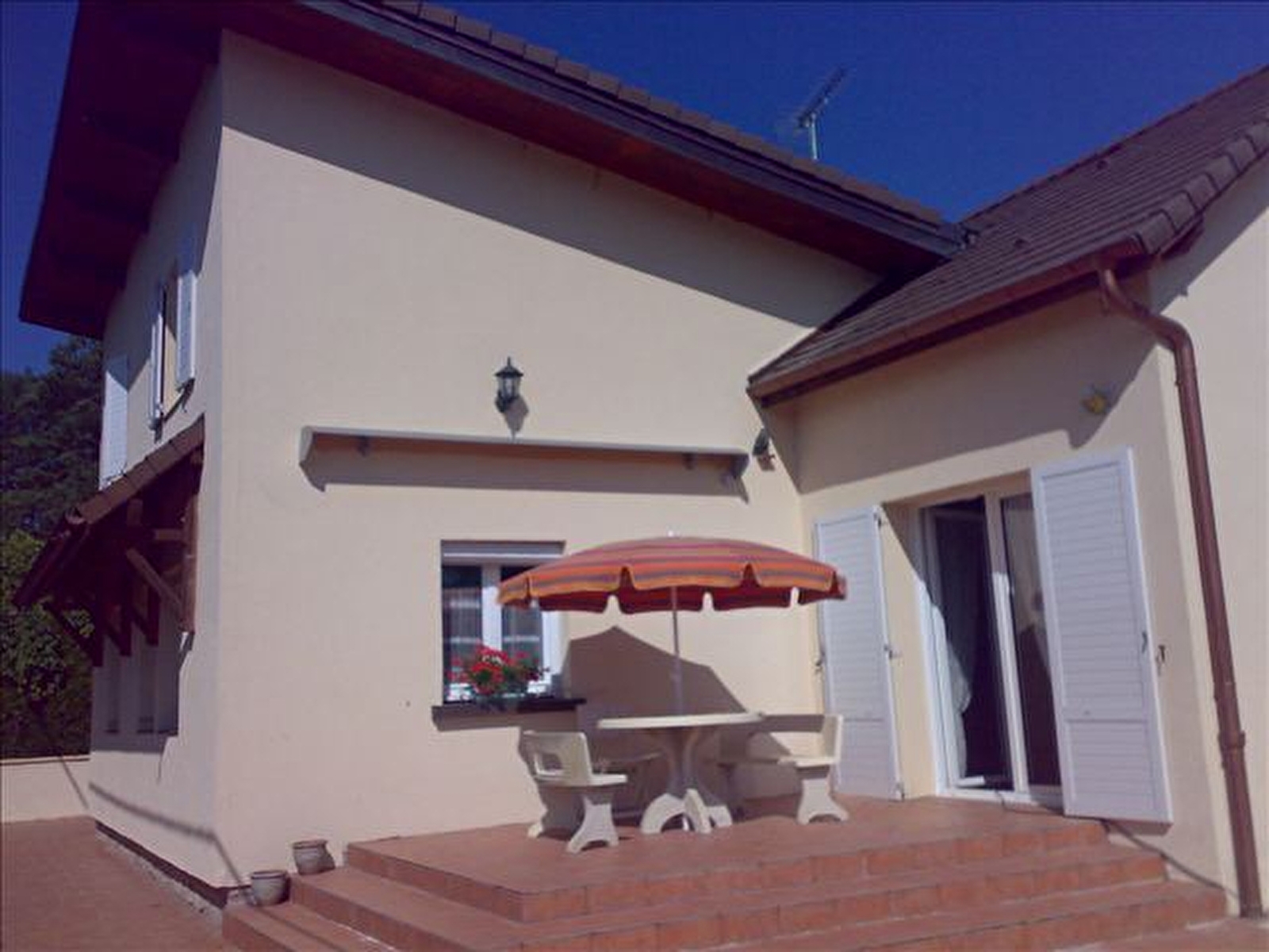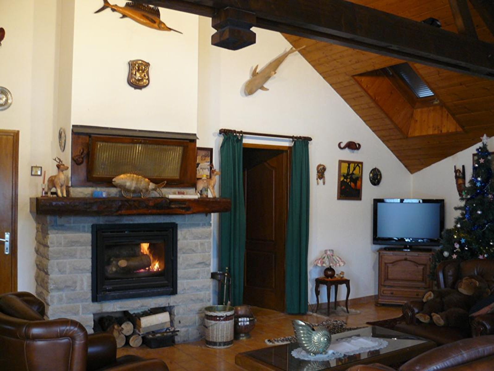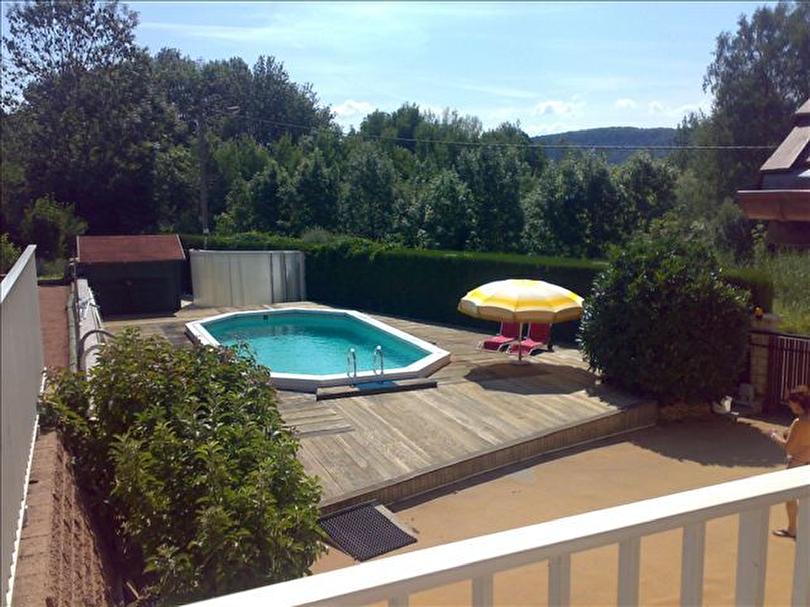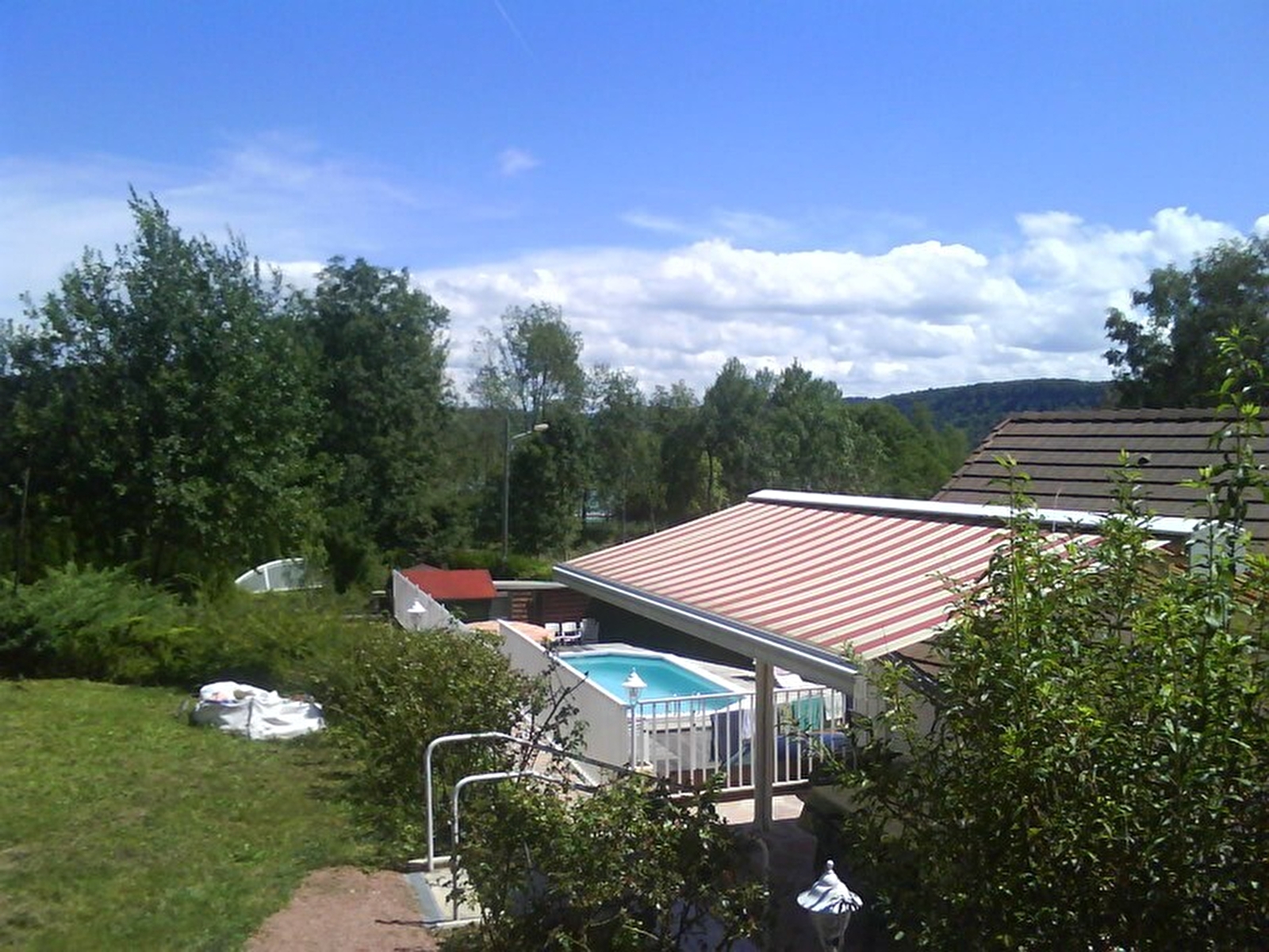 Detached house, on the ground floor, fitted kitchen, living room, sitting room, library, hi-fi system, games table, bedroom 1: 2 single beds, shower room and toilet in the bedroom, bathroom. First floor: Bedroom 2: 2 single beds, Bedroom 3: 1 double bed, Bedroom 4: 1 double bed, electric heating. Terrace, garden furniture, summer kitchen, covered shelter, magnificent enclosed wooded grounds, small stocked pond (Koi carp). Boules pitch. The gîte is located on the edge of the Cascades du Hérisson tourist route (busy road). Charges not included. Sheet hire: €20/bed. Cleaning charge: €100. Private swimming pool with secure gate