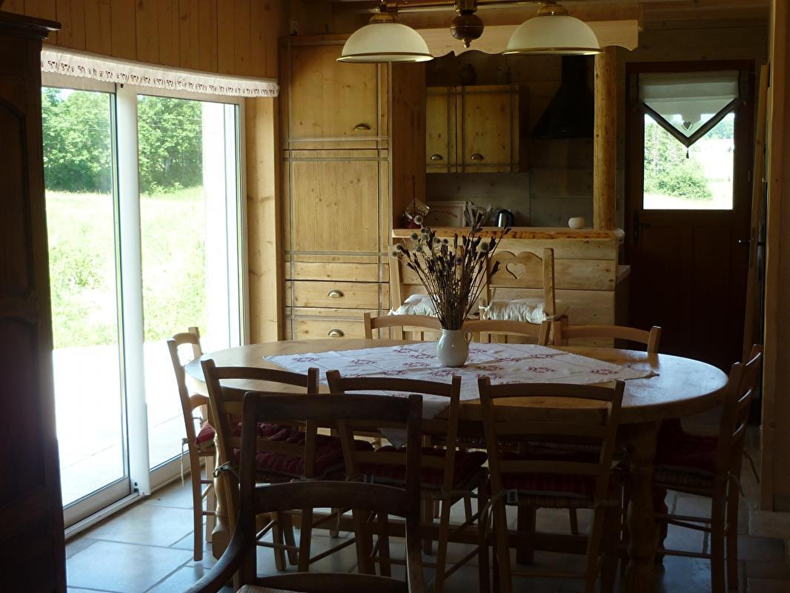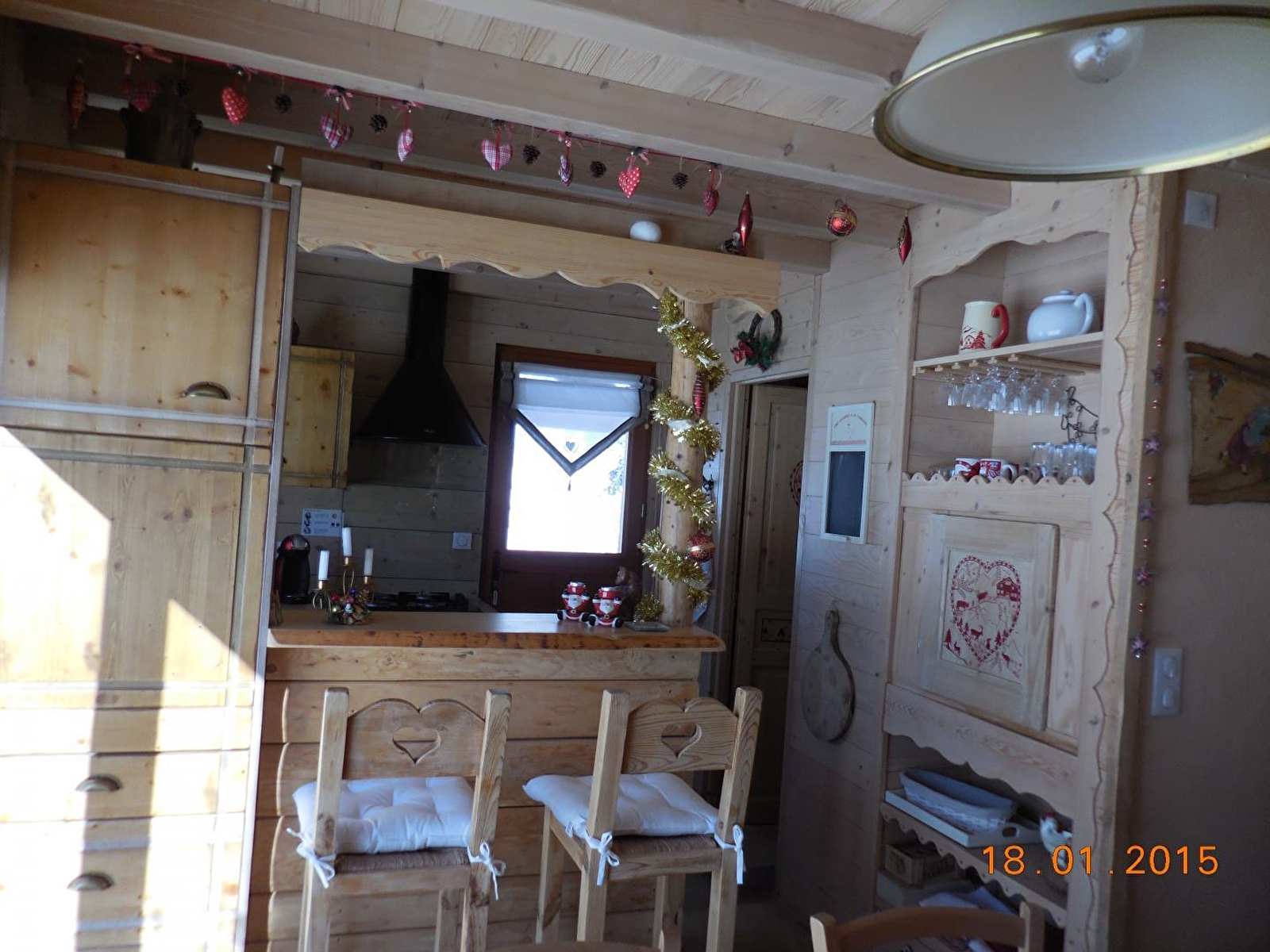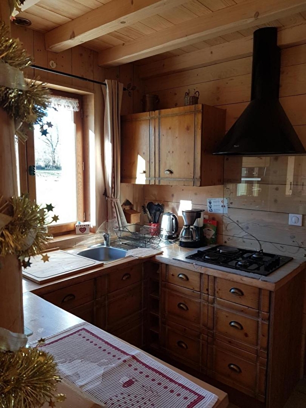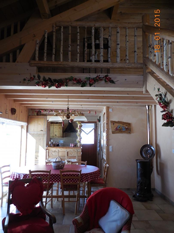 On the ground floor: vast living-room (wood stove, wood for free) and equipped kitchen : raclette-equipment, toaster, coffee maker, water boiler…