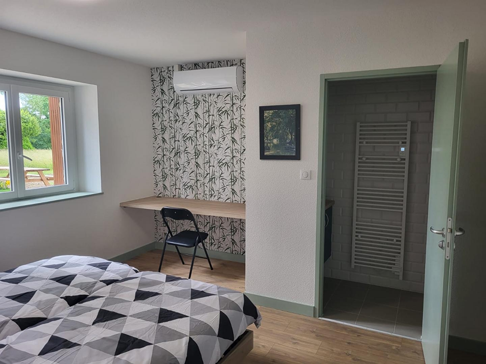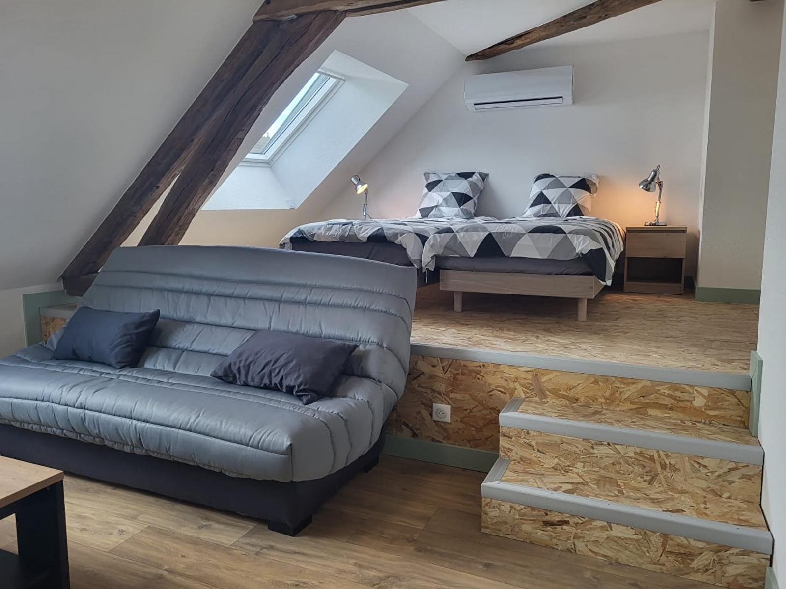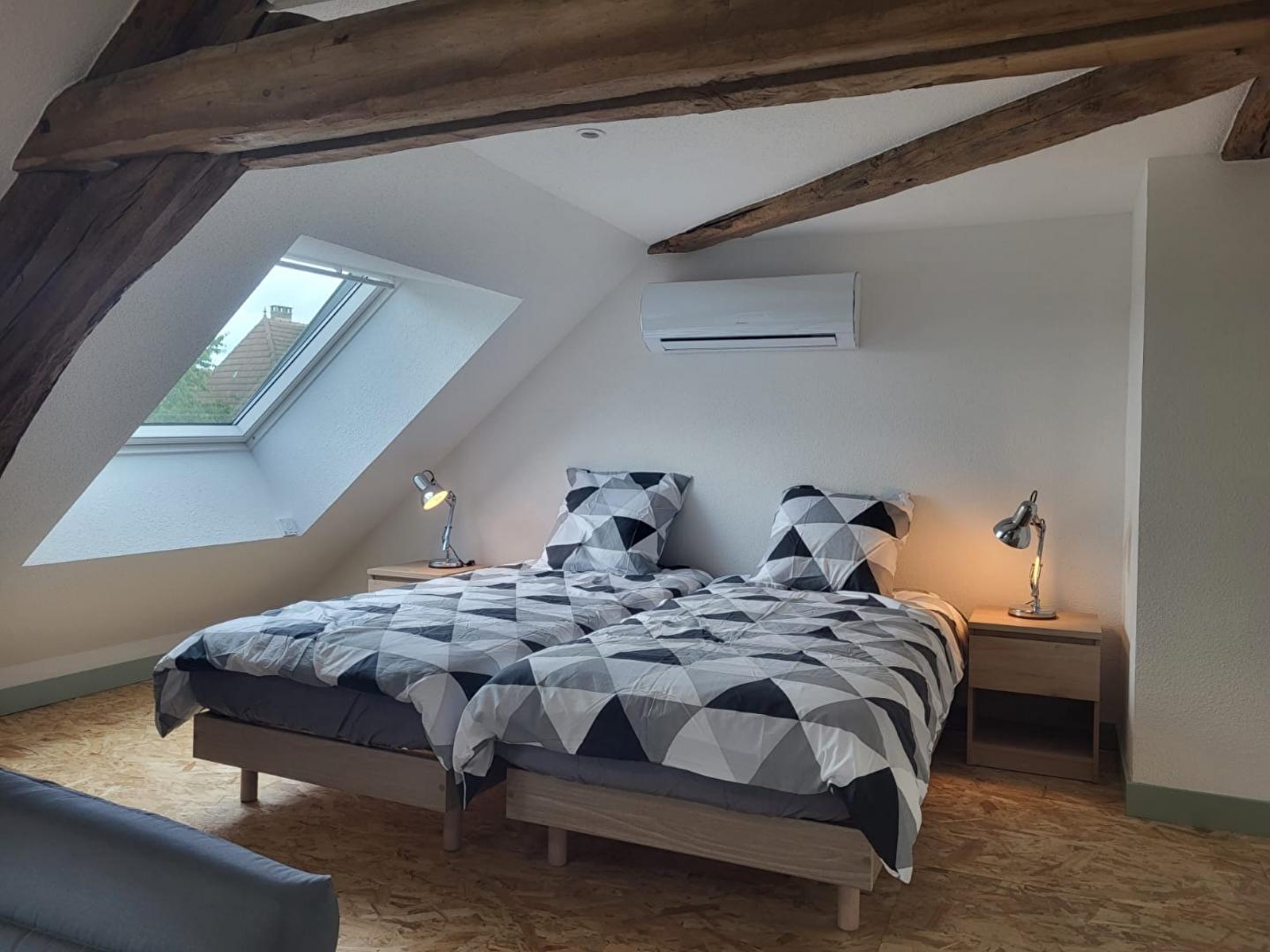 In the heart of the village, this house adjoins another gîte and comprises, on the ground floor, a living room with a fully-equipped kitchen, a sitting room with TV, a shower room with walk-in shower, a separate toilet and 2 bedrooms: one with 2 single beds and the other with a double 160cm bed. Upstairs, a bedroom with 2 single beds and a shower room with WC. Reversible air conditioning. Outside, small garden with garden furniture, deckchairs and barbecue. Bonus: gîte accessible to people with reduced mobility. There is a fruit shop and mini-market 50 metres away. Ideally situated for hikers and cyclists, heritage lovers will not be outdone by the discovery of Dole, a town of art and history, or the picturesque villages of Baume les Messieurs and Château-Chalon. Possibility of accommodating 2 or 4 extra people with a sofa bed in the bedroom upstairs: + 50 euros per person for the stay Possibility of renting the adjoining gîte for a total capacity of 12 people (reference G2447)