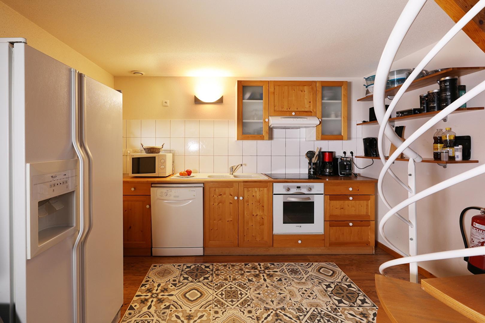 - open-plan fitted kitchen (traditional oven, microwave, fridge/freezer, etc.),