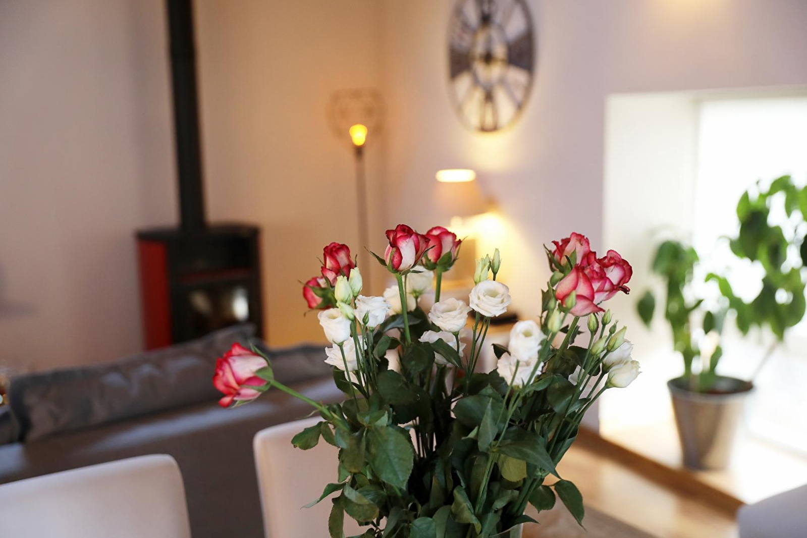- Cathedral living room (DVD player, HIFI, wood-burning stove),