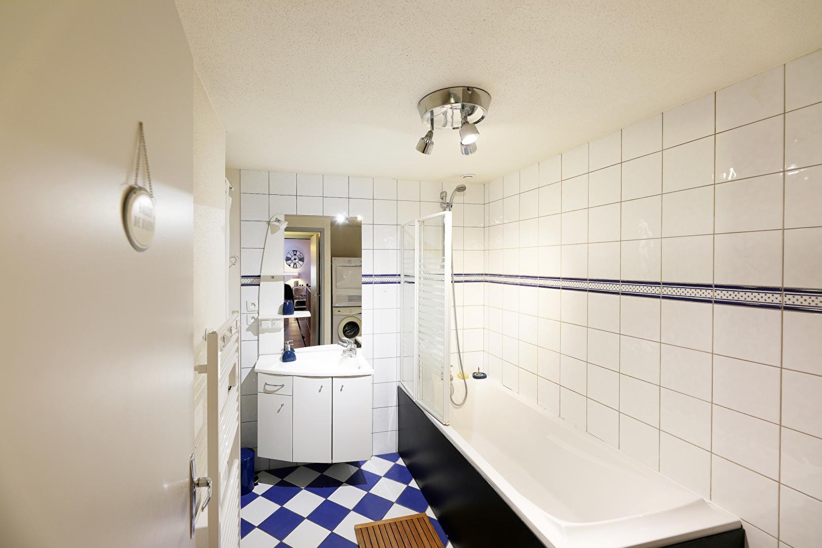 - Bathroom with bath, equipped with washing machine and tumble dryer,