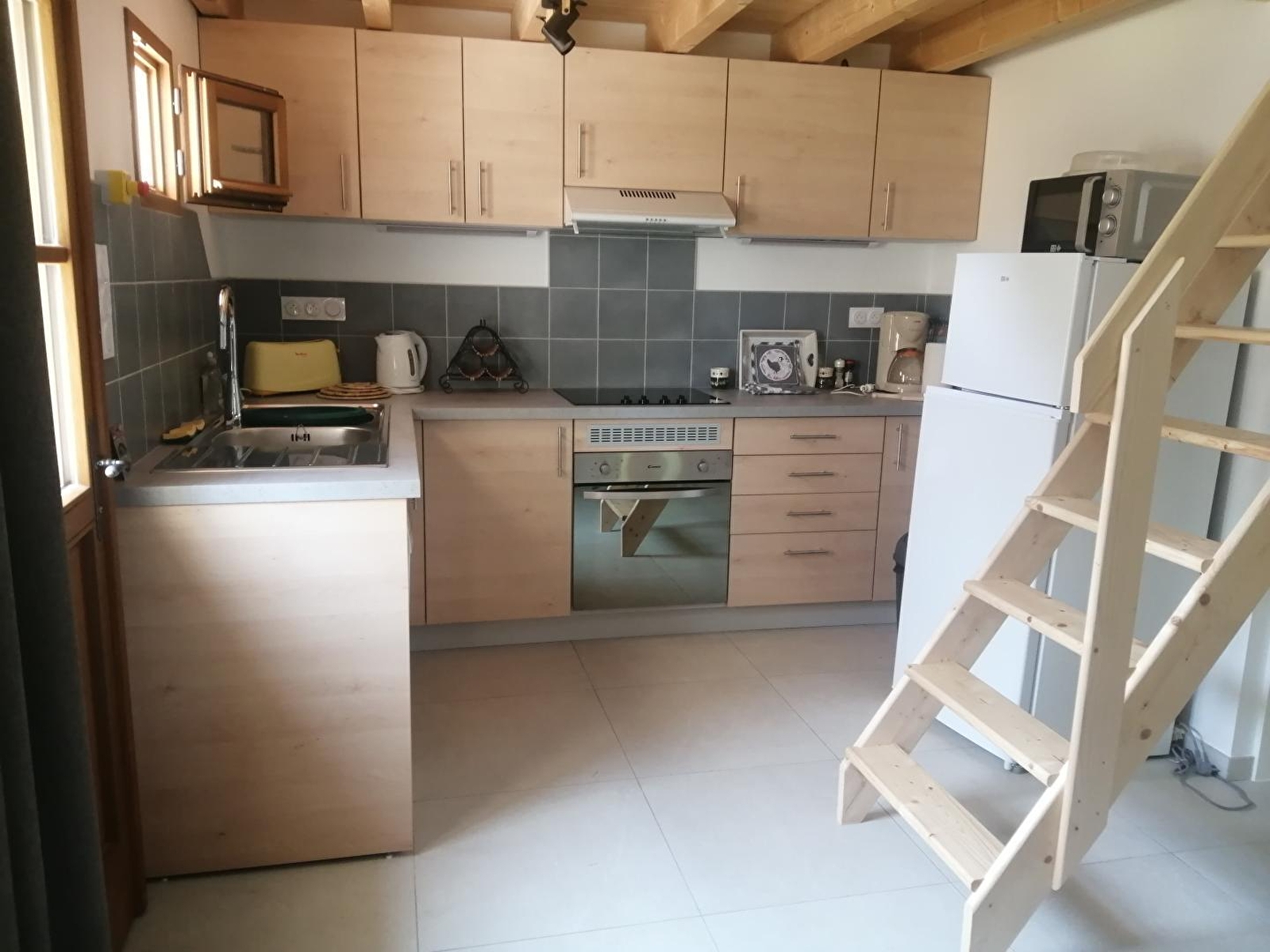 Large living room with open kitchen, shower room with Italian shower and wooden mezzanine: 2 beds of 90, sofa bed of 140 (all quality bedding)