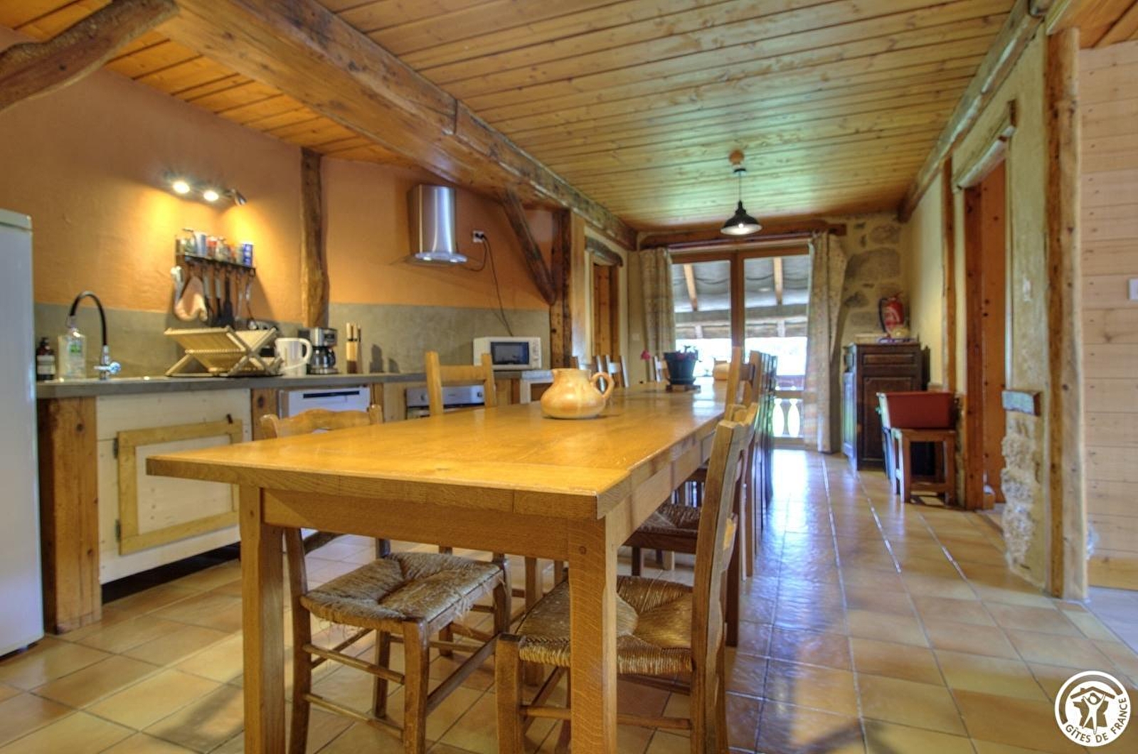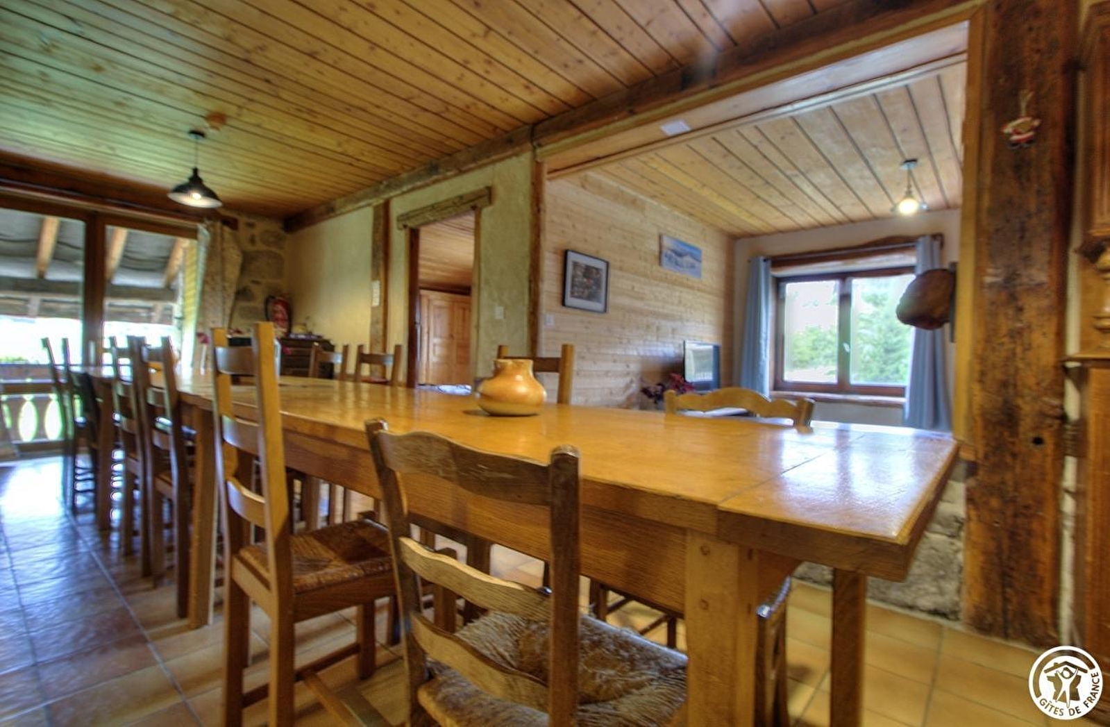 Discover the authentic charm of a 15-person gîte in Les Plans d'Hotonnes, a family ski resort nestled at an altitude of 1050 m. Ideal for a stay in the heart of nature, this seasonal rental is a typical Jura house, adjoining the owners' residence. Enjoy direct access to the ski slopes. The ski area offers activities for the whole family, whether you are a fan of downhill or cross-country skiing. For an even more intense experience, go on an adventure on the snowshoe trails. During the summer, the many hiking trails on the Retord plateau and the mountain bike trails attract outdoor enthusiasts. For the more adventurous, climbing and the Via Ferrata are nearby. Challenges at all levels. If you like air sports, don't miss out on discovering the region from the air thanks to paragliding! Access via a shared corridor: on the right, gîte 1 offers a kitchen open to the living room and its lounge. Three bedrooms, one with 4 single beds (including 1 bunk bed), a sleeping area with a 140*190 bed (without opening to the outside) with private shower room-WC. A small 140*190 bedroom with private shower room-WC. A balcony with a beautiful view of the countryside. On the 1st floor: gîte 2: living room with a beautiful view of the surrounding countryside. "Chalet" decoration. Mezzanine TV corner. Includes 3 bedrooms, including 1 with a double bed; 1 other with three single beds, and 1 with two single beds and a bunk bed. 3 shower rooms. On your arrival: bed linen, towels and household linen provided, heating included, as well as the heated swimming pool (10 x 4 m). Ideal for moments of relaxation after a day of activities. Cleaning package (€150). The filling of the swimming pool water and its use by tenants may be restricted in accordance with the "drought" orders of the Ain prefecture.