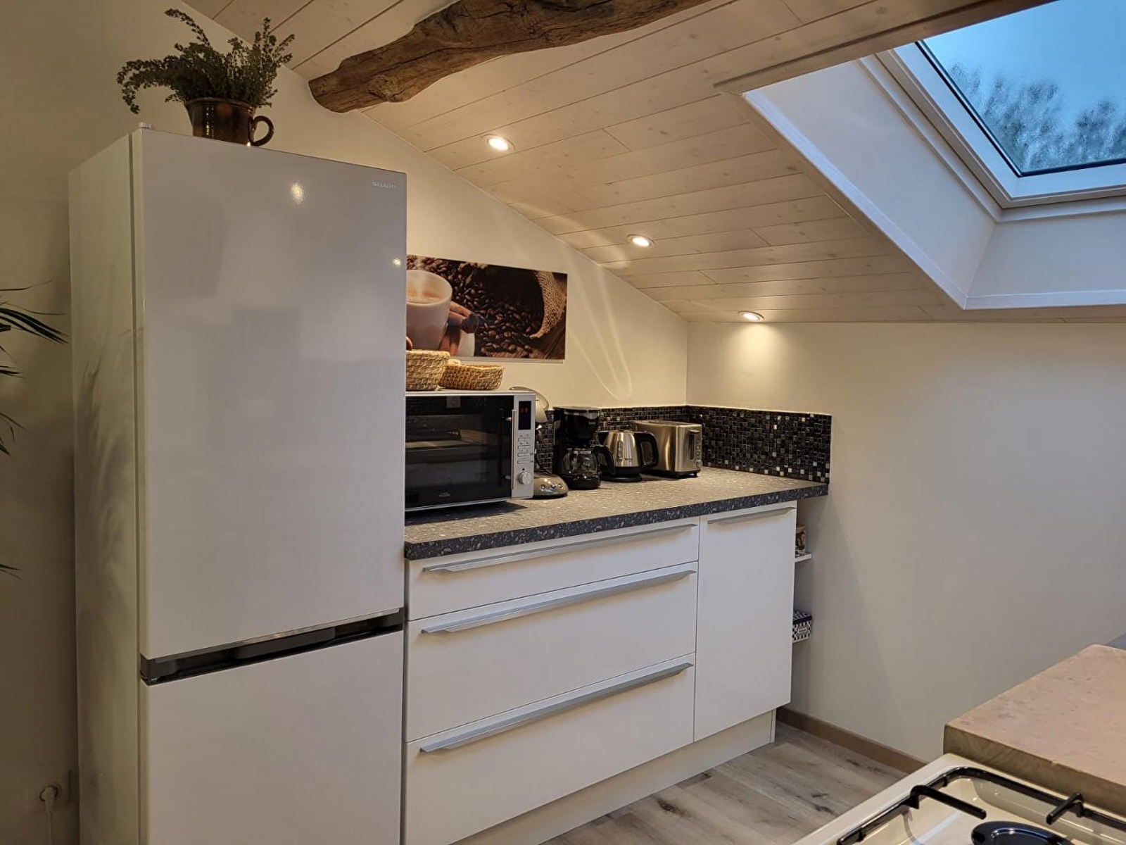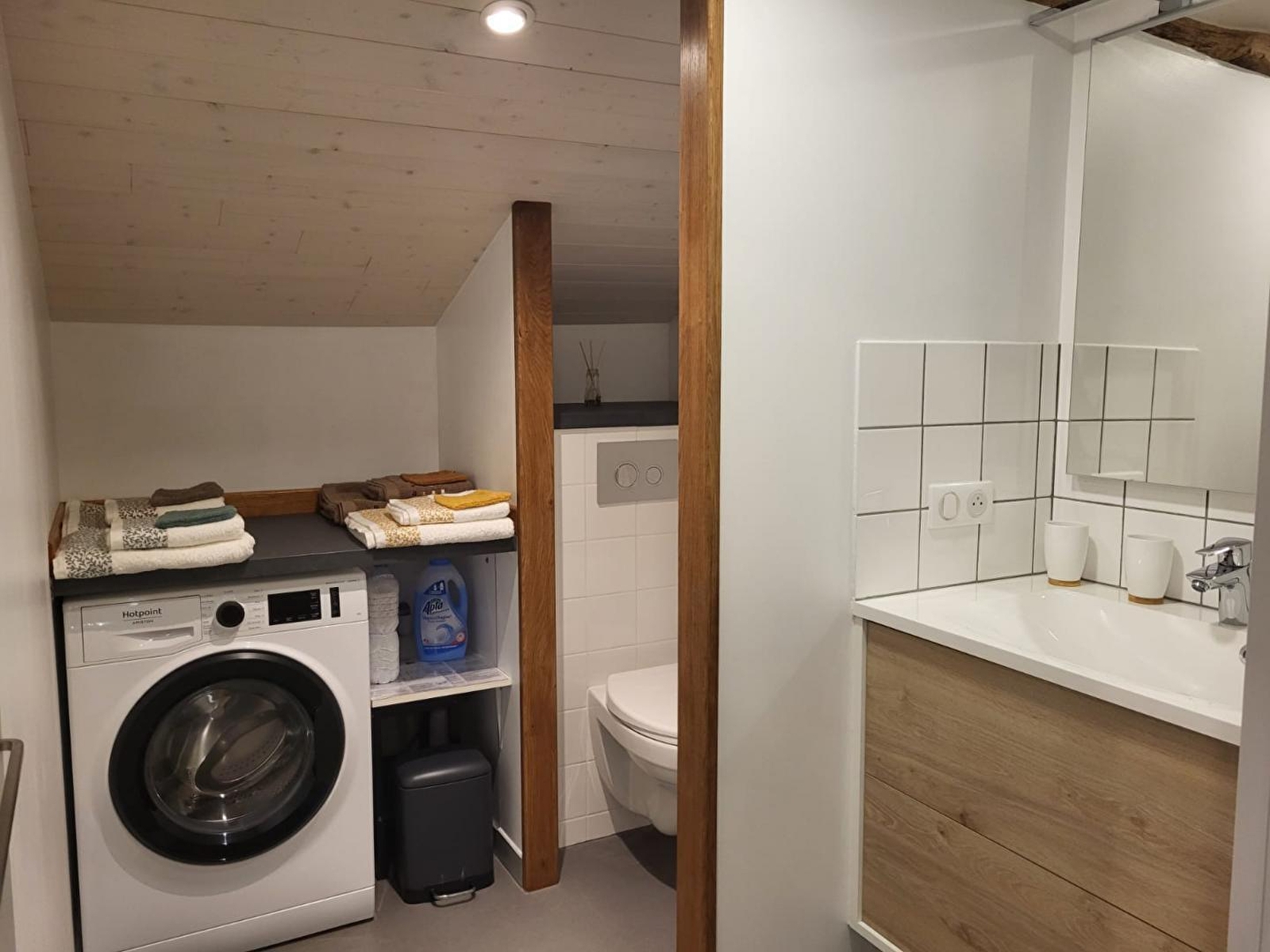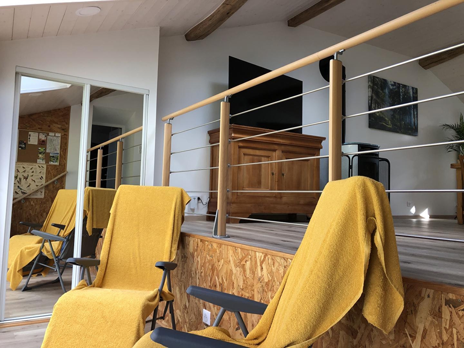 Situated in a hamlet of 50 souls, this gîte is located in a house adjoining that of the owners. Access is via a stone staircase at the back of the house. A blend of the old and the new, this brand-new, well-equipped gîte has been designed by its owner with great attention to detail. The stonework and exposed beams of this farmhouse give this accommodation plenty of charm and a warm atmosphere. It comprises a bright living room with fully-equipped kitchen, sitting room with TV, pellet stove (bags supplied free of charge) and a sofa bed offering additional sleeping accommodation for 2 people (140*190), a bedroom with 1 double bed 140*190 and a shower room with shower and WC. A loggia with 2 deckchairs, ideal for reading and relaxing, with a view over the vast horse pasture, is the perfect place to recharge your batteries in the heart of nature. Outside, you can enjoy a terrace equipped with garden furniture and a plancha. Car and/or motorbike shelter. Ideally located for lovers of cycling, walking and horse riding. You can also explore the forests, lakes and waterfalls and drive 40 minutes to Bourg-en-Bresse to visit the famous Brou royal monastery. A number of local producers and the Nantey cheese dairy are also close by, so there's plenty to tantalise your taste buds!