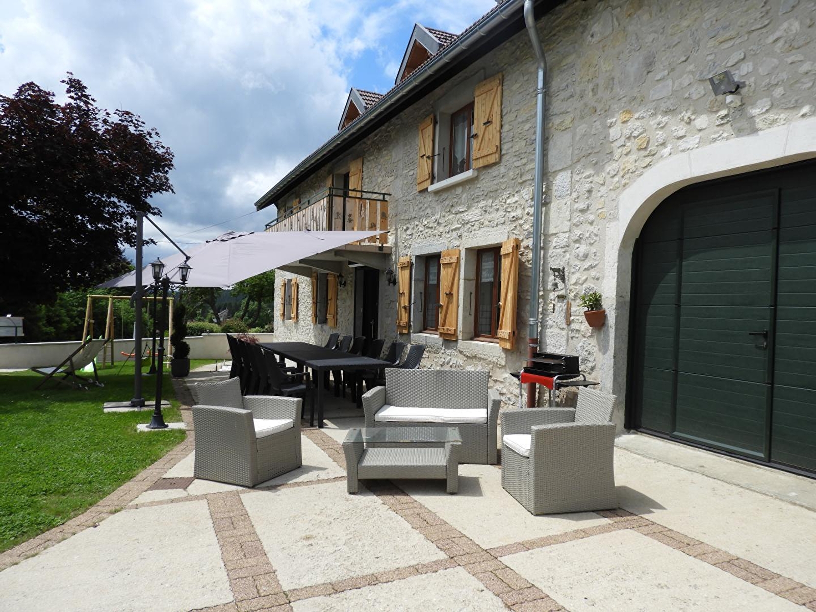 In the heart of the Parc Naturel du Haut Jura, opposite the ski slopes of the Gentianes resort and not far from the lakes and waterfalls region, come and enjoy this large, fully renovated detached house. Ground floor: fully-equipped separate kitchen, dining room, living room with bar area, sofa, flat-screen TV and wood-burning stove. Shower room with walk-in shower, separate wc. One bedroom with a 140cm bed. Upstairs: mezzanine comprising a reading and games area and a sleeping area with 2 single beds. Access to the balcony. Two bedrooms, each with a 140cm bed, and a third bedroom with a 140cm bed and a 90cm bed. Large shower room with shower cubicle and double washbasin. Separate WC. To the side of the house, you will find an independent flat for 4 people, comprising a living room with fitted kitchen and sitting area, a shower room with wc and, upstairs, a bedroom with two 90cm bunk beds and a 140cm bed. In fine weather, you can also make the most of the adjoining, unenclosed garden, complete with garden furniture and barbecue. Also available: petanque area, ski and bike storage. This house can be adapted to accommodate from 2 to 15 people, and all the rental options on offer will always be in a detached house. Don't wait any longer to book your summer or winter holiday! Two cheques will be required for the deposit, one for €850 for the house and the other for €200 for cleaning.