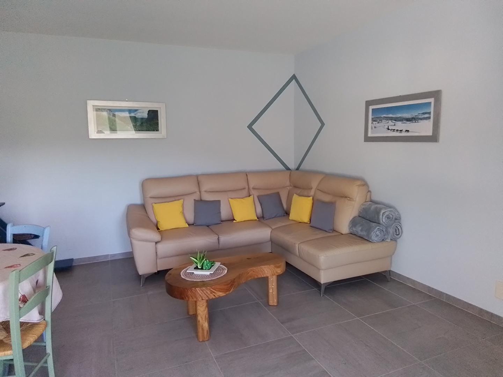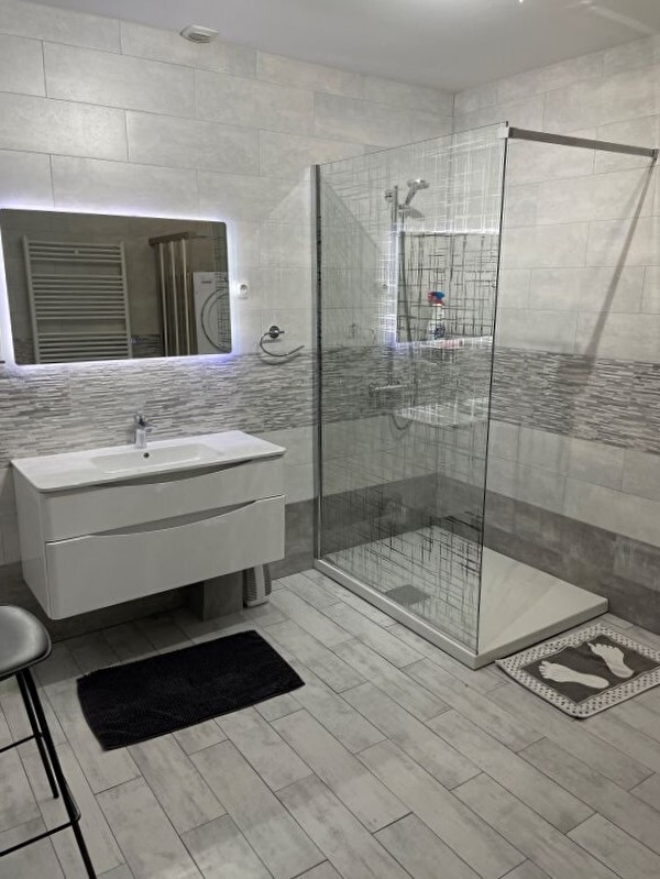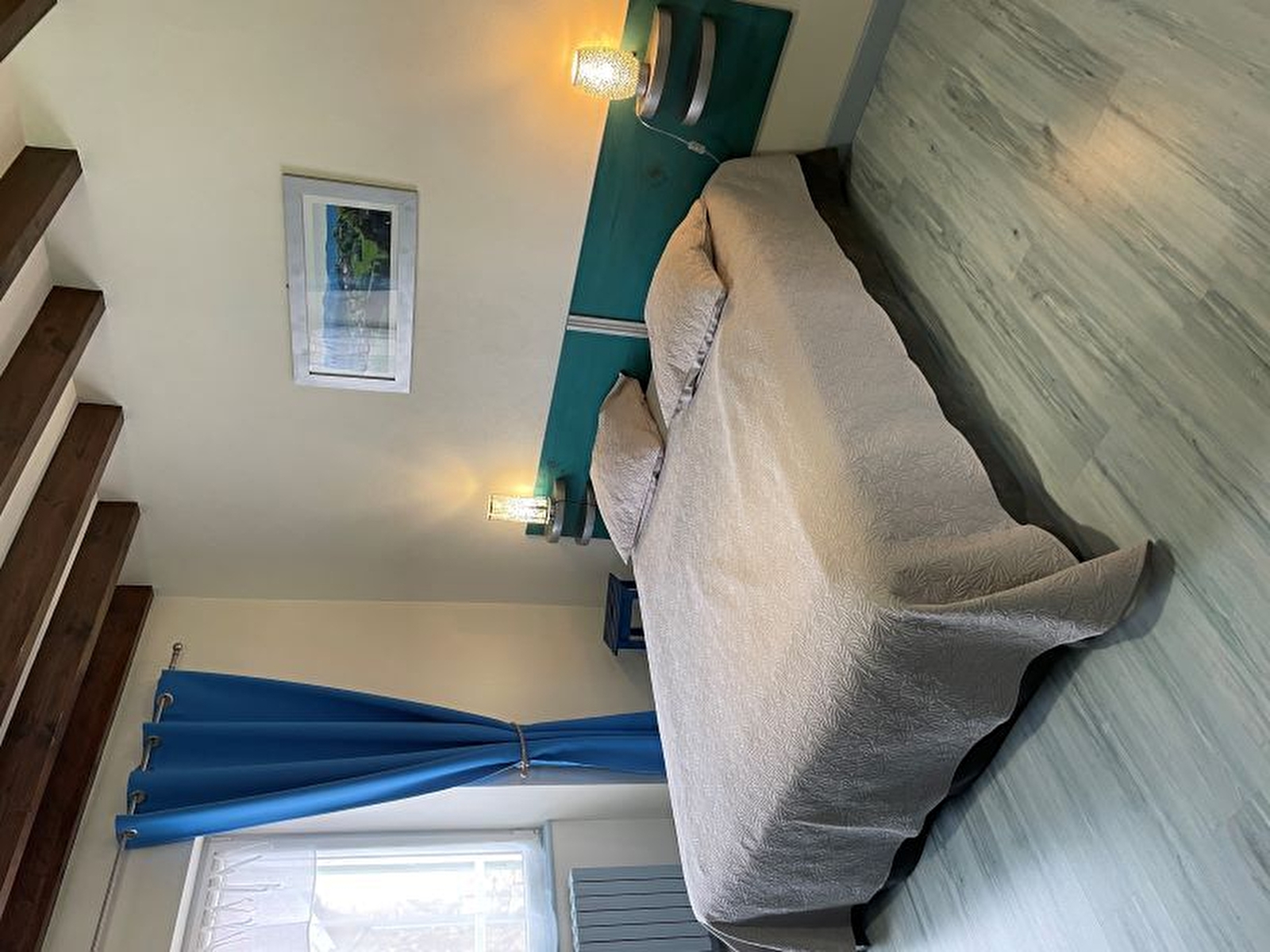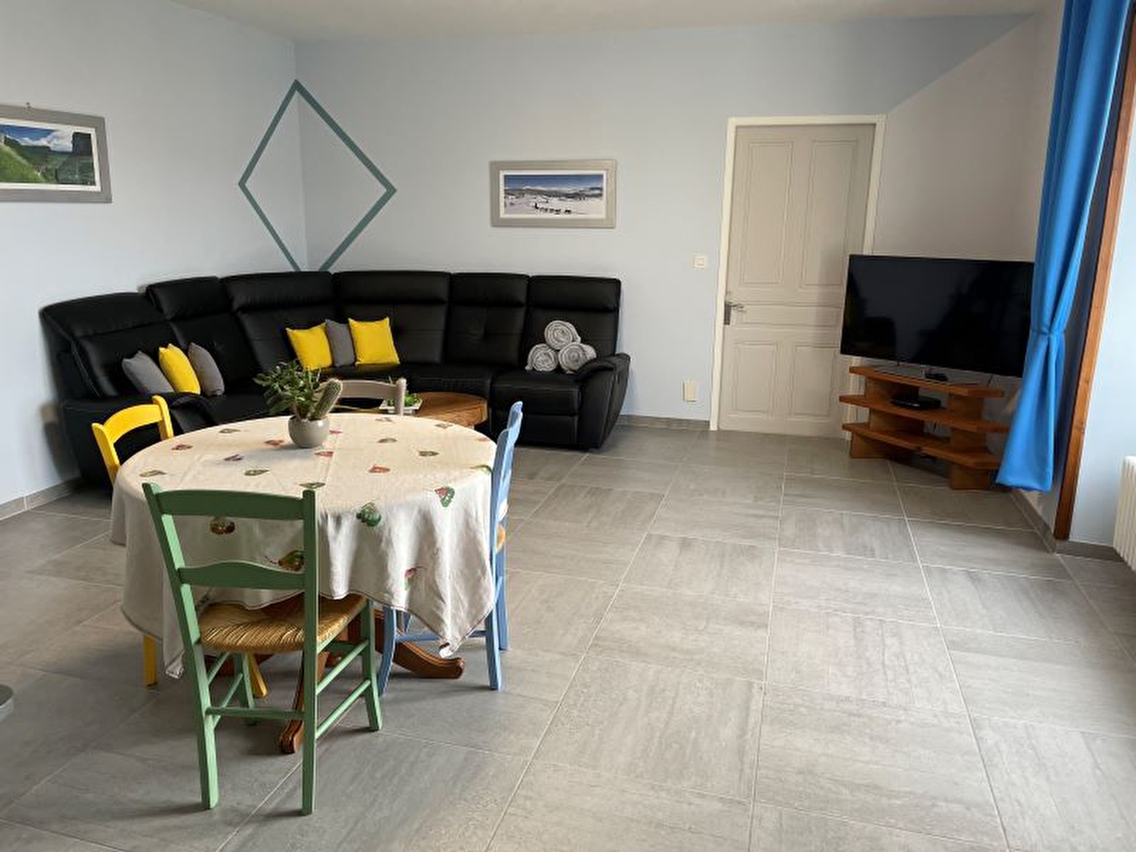 In the heart of the Lakes and Cascades region, self-contained accommodation in the owners' semi-detached house, which also houses another gîte. Ground floor entrance with storage space. First floor: large, bright living room, large flat-screen TV, sofa. Separate fully-equipped kitchen. First bedroom with double bed (140cm). A second bedroom with a 160x200 bed and two 90x200 bunk beds. Shower room with large shower, washing machine and tumble dryer. Separate WC. Terrace close to the gîte, equipped for the summer months with garden furniture, parasol and barbecue. Sheets are provided free of charge, but not towels.