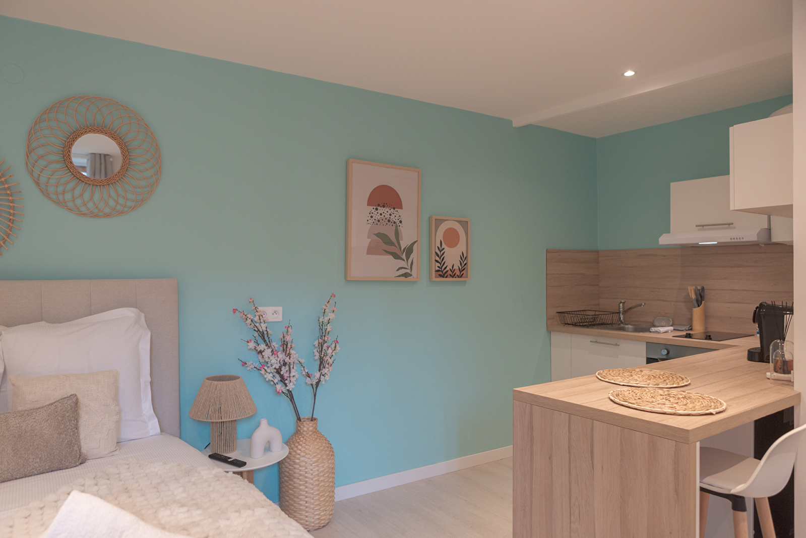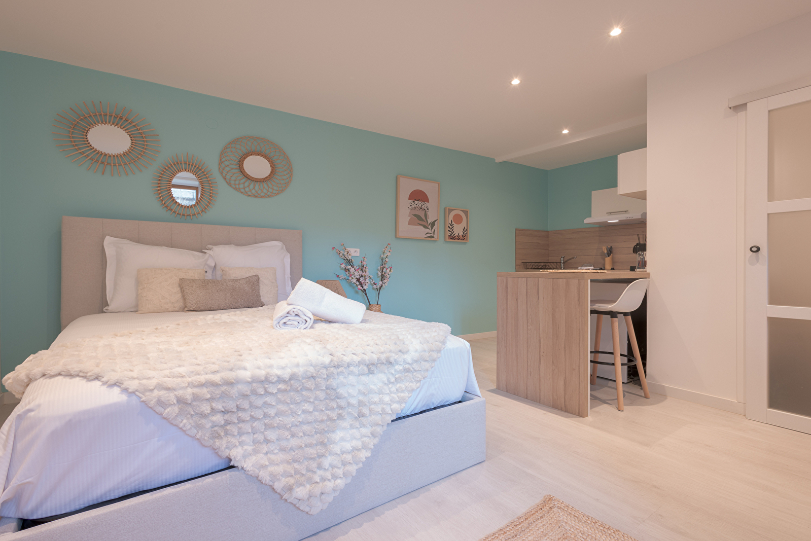 -Bright studio with a warm, cozy atmosphere