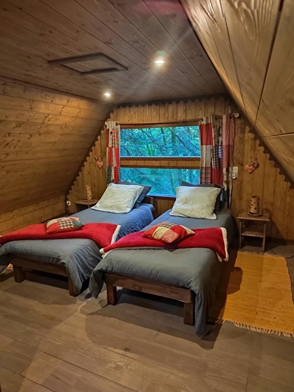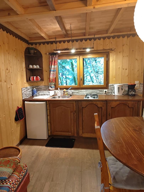 The "P'tite Maison" at Moulin de la Source is a pretty little wooden cabin 250 m from the main house, nestling in a green setting in the heart of a rocky cirque classified as a Natura 2000 site. Situated in a small, quiet, authentic village, close to major tourist attractions such as Baume les Messieurs and Château Chalon, with many hiking trails to discover. You can only get there on foot, which is easy to start with, as you walk 200 m along a small canal that was once used by the mill, and 50 m along a sloping path, because of the difference in height! Once you've arrived, you'll find a living room with a kitchenette, shower room and dry toilet, and upstairs a bedroom with 2 x 80cm beds (convertible to 160cm) accessed by a mill ladder. The terrace is ideal for breakfast, meals or just enjoying the peace and quiet of the surroundings, lulled by birdsong and the murmur of the stream. A real little paradise that invites you to recharge your batteries. A must-see! Access to the Moulin de la Source gîte facilities (wifi - washing machine - tumble dryer - iron and ironing board - fondue and raclette set). Minimum stay 5 nights