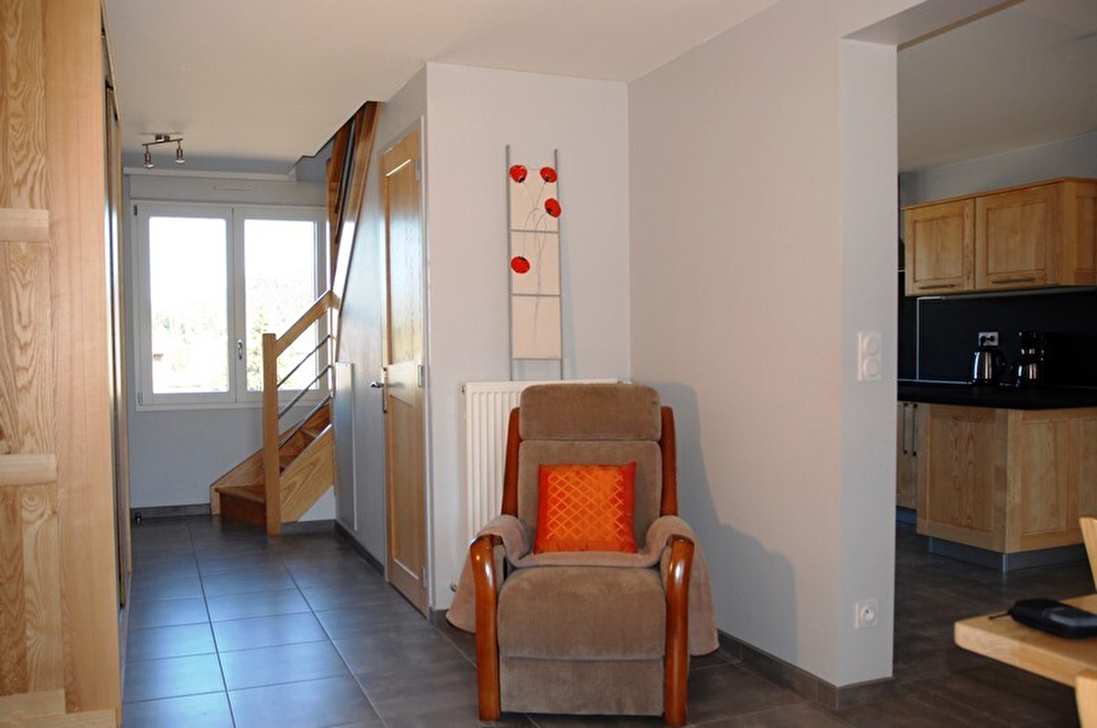 This 1st floor gîte is set in the heart of the Haut Jura Regional Nature Park, close to the lake district. Completely renovated, it comprises an entrance hall with 1 separate toilet, a spacious living room with dining area and kitchen, access to a large balcony with garden furniture and electric barbecue. Upstairs: lounge on the mezzanine (flat-screen TV), 2 bedrooms each with 1 double bed (140cm) and a 3rd bedroom with 2 single beds, large shower room (shower and wc). Bed linen provided and beds made on arrival. Ideally located close to the ski slopes and the access road to Les Rousses resort. Lock-up for skis, bikes and pushchairs. Covered carport. Short-stay and weekend rentals available: please ask the owners.