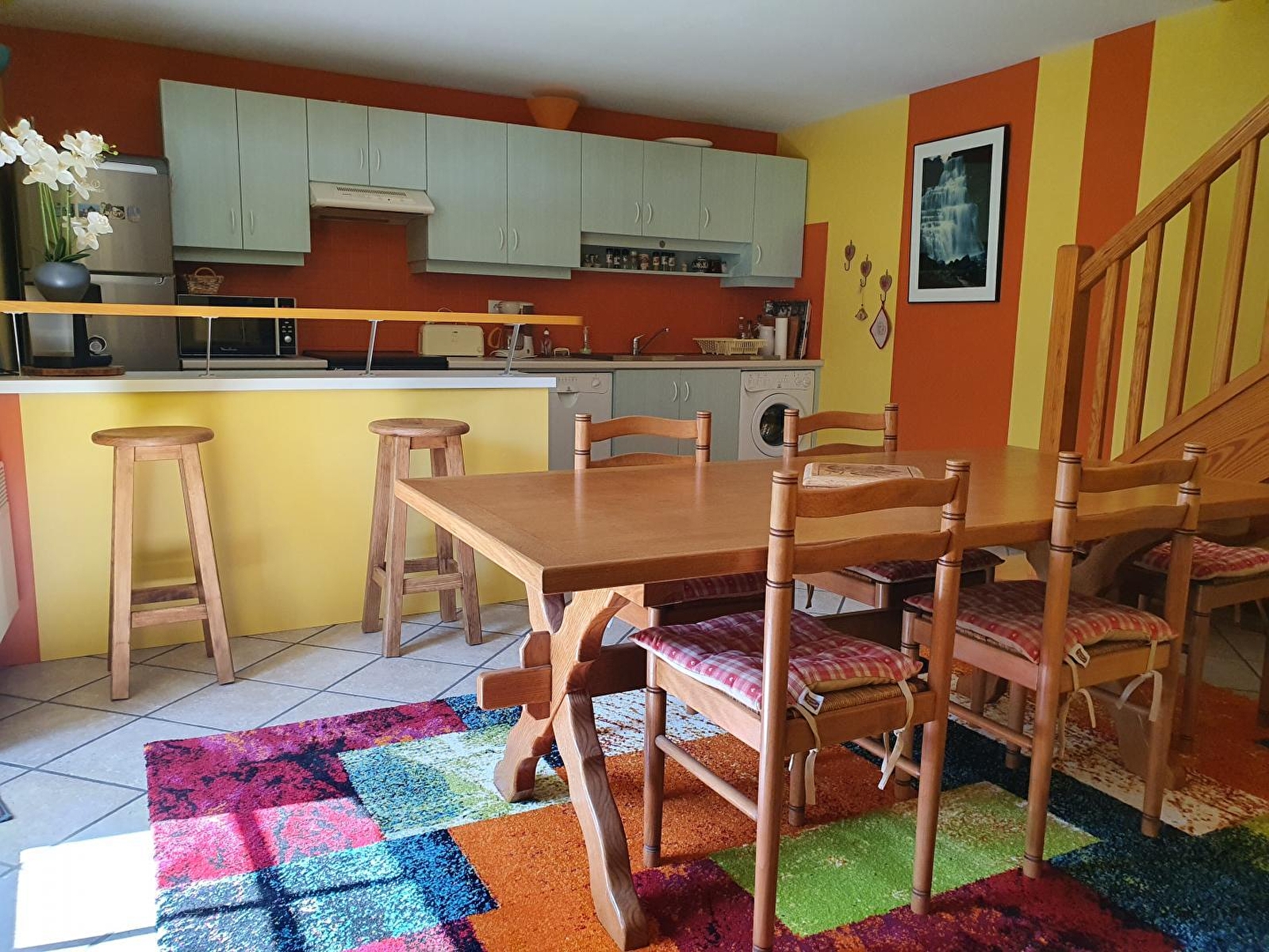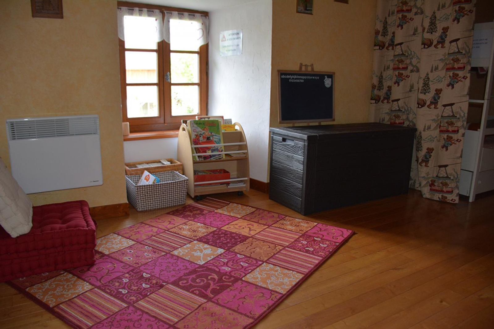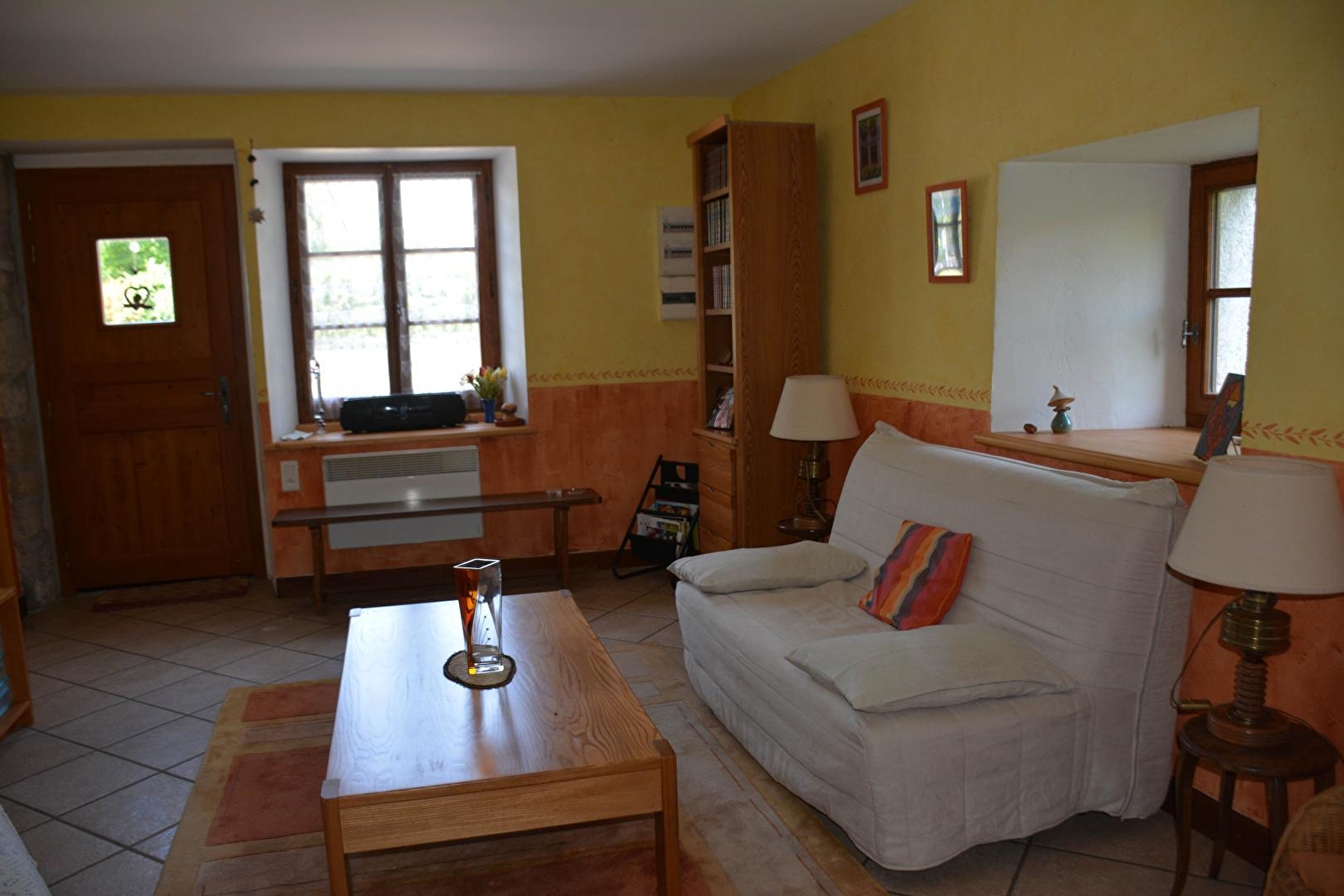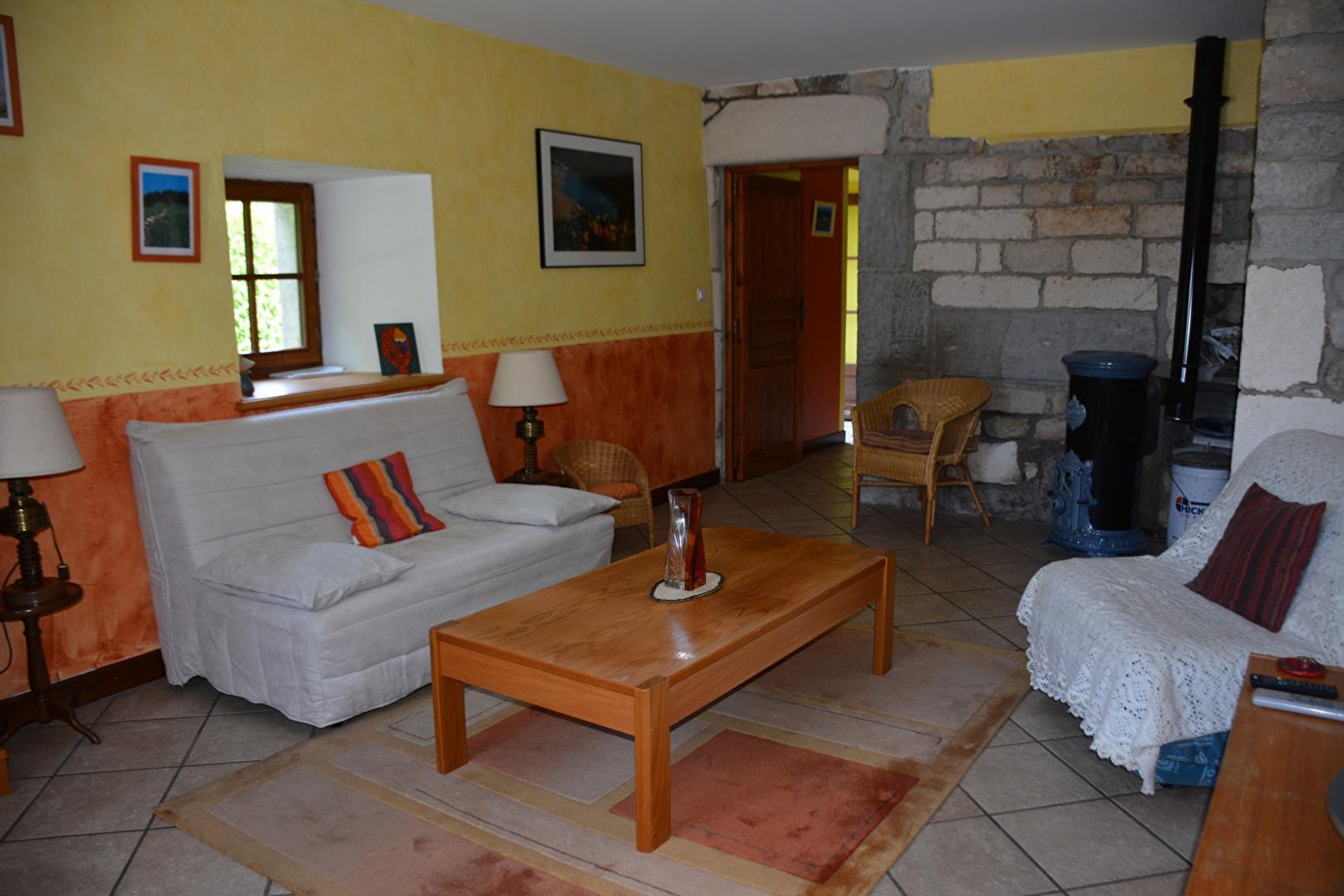 Ground floor: kitchen-living room, sitting room, sofa bed, wood burner, upstairs: bedroom 1 (1 x 2 beds), bedroom 2 (2 bunk beds), shower room, enclosed adjoining land, courtyard, terrace, HI FI system, microwave.