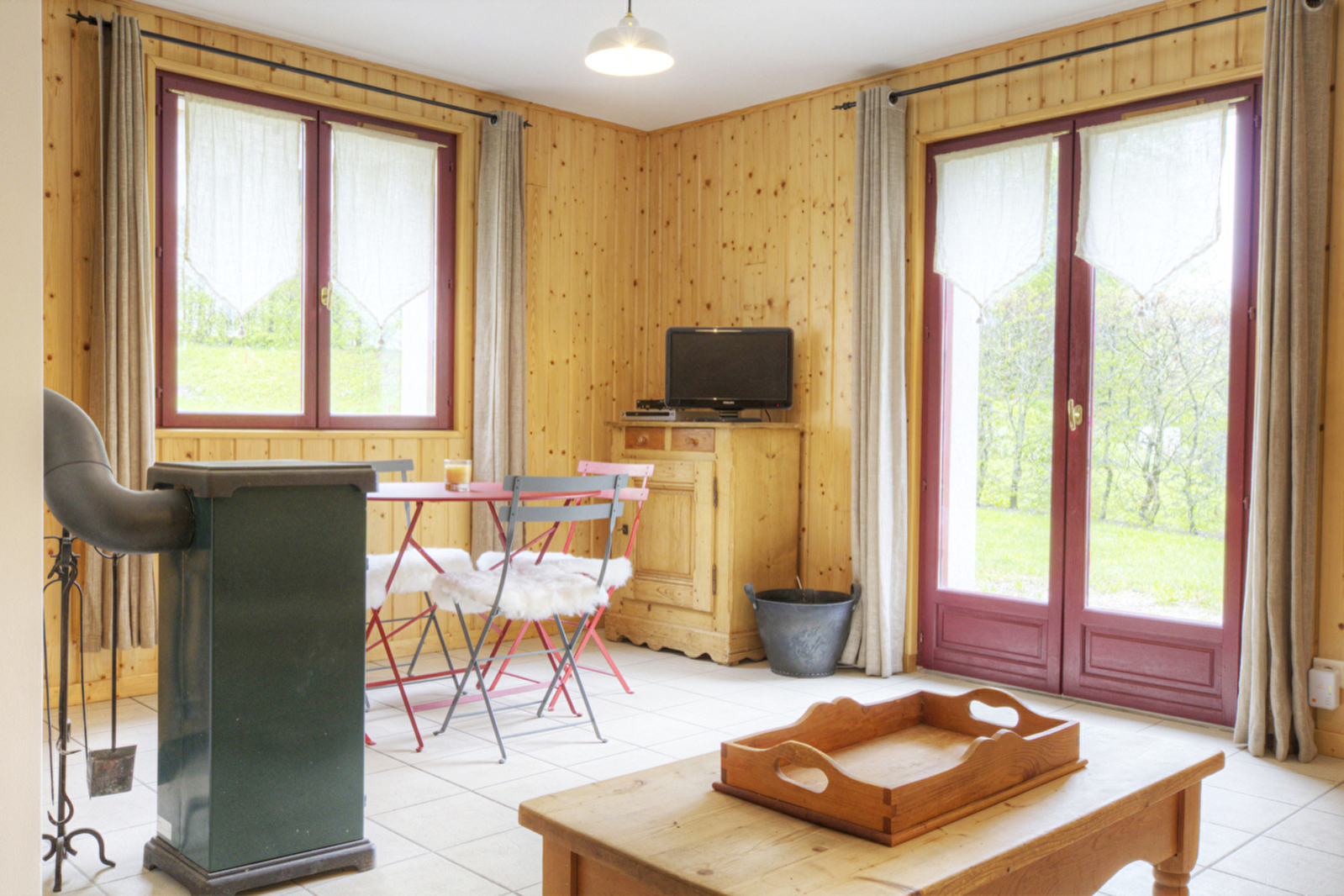Chalet-style gîte (60 sq.m.) adjoining owners' house at centre of village, near the ski slopes. Entry into lobby (storage for skis & boots), separate entrance into light & airy living room/lounge (single bed + pull-out bed), practical kitchen partly open onto living room, bedroom (double bed, bed for child - 5 years and under), bathroom, separate WC.|Bed linen supplied free. Heating: oil & wood. Pets allowed with owners' prior agreement. Lots to do in Lélex and surrounding area: skiing, walking/hiking, rail tobogganing, adventure trail.