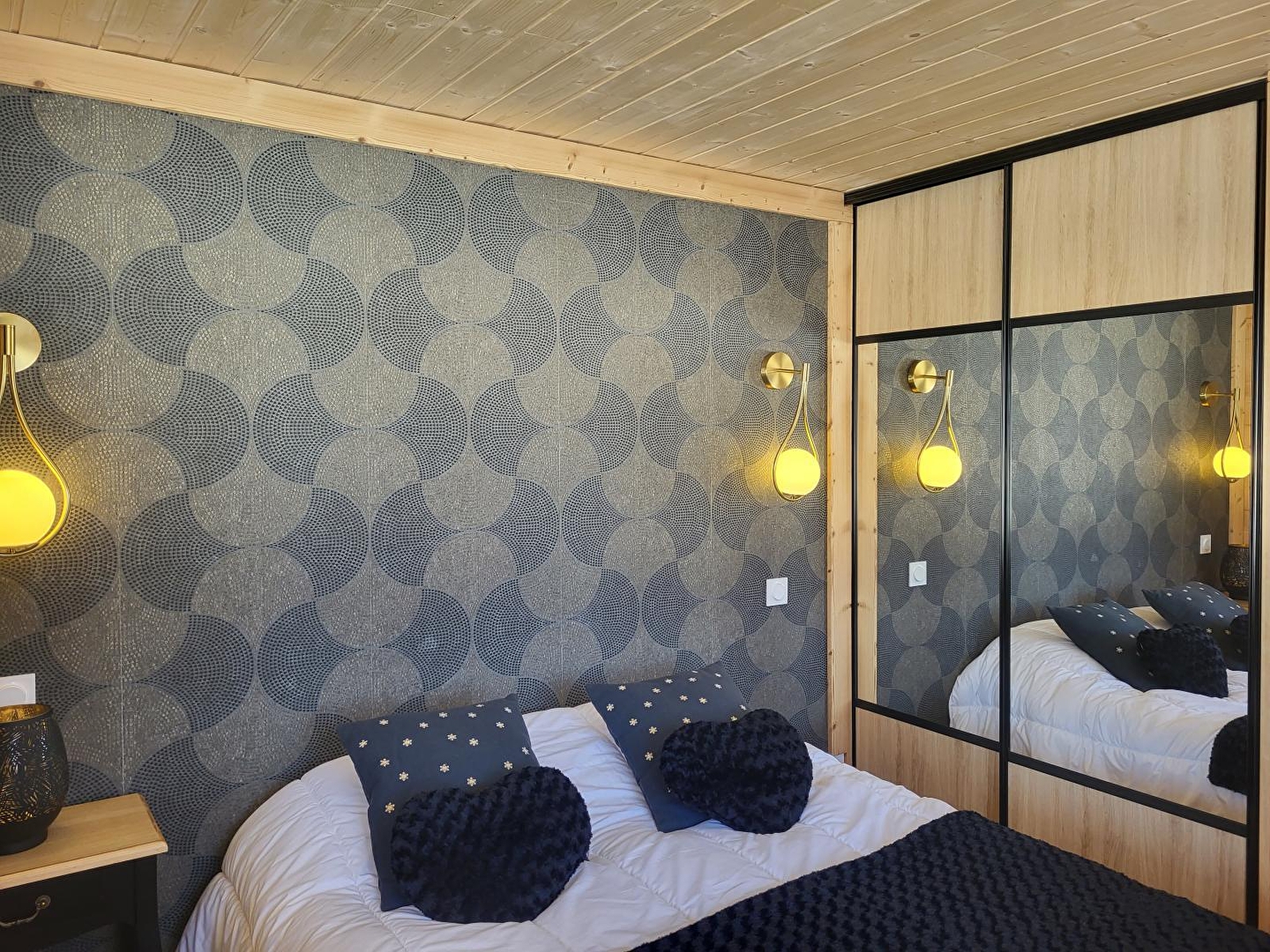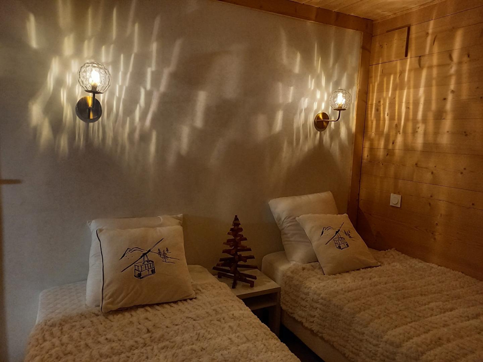 Chalet le 5ème Elément is located 5km from Les Rousses and Prémanon, at an altitude of 1250 m, in the heart of nature. Calm and serenity will be the watchwords of your stay. On the ground floor, you'll find an entrance hall, a bedroom with a double bed (140x190), a bedroom with 2 single beds (90x190), each with a large double wardrobe, a shower room with a large walk-in shower and a separate toilet. Upstairs, you will find a large living room with fully-equipped kitchen, dining room, sitting room with wood-burning stove (TV, DVD player, free Wi-Fi) and a third bedroom with 1 double bed (140x190). The living room opens directly onto a large east-facing terrace and a large south and west-facing balcony. There are garden furniture, sun loungers, an electric barbecue and ski/bike storage. Downhill ski slopes and hiking trails are within walking distance of the gîte.