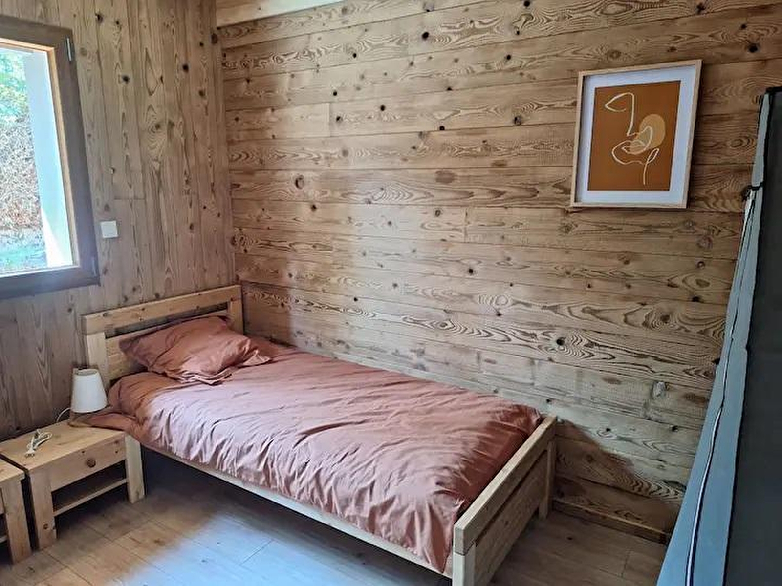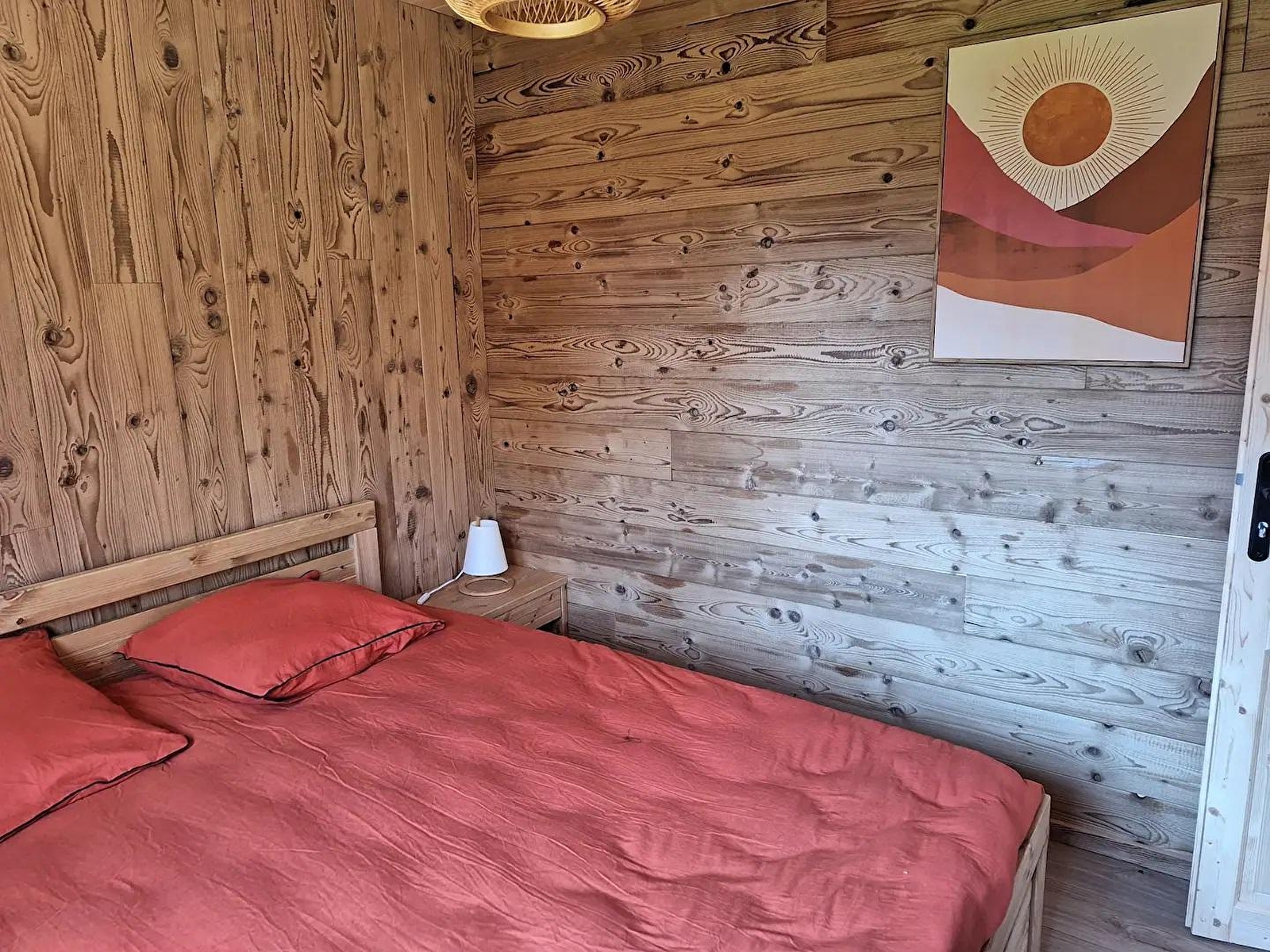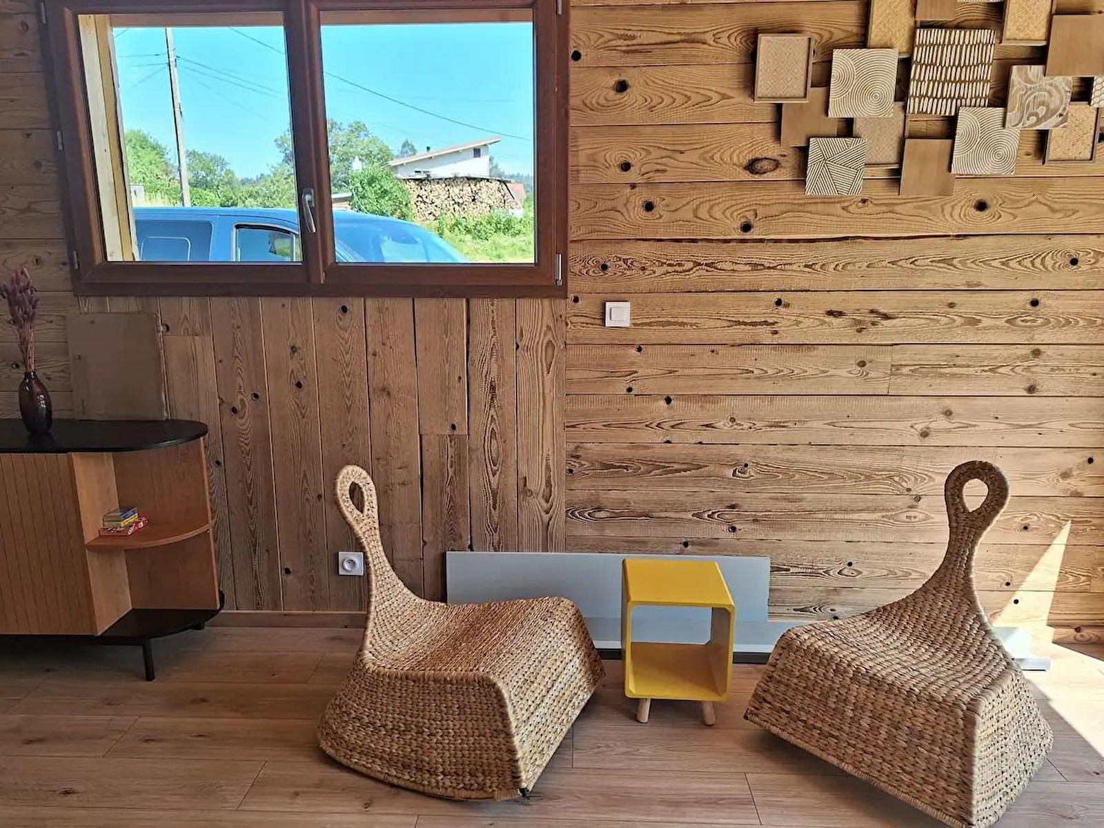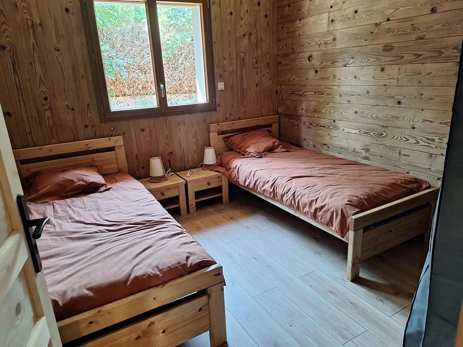 This new timber-frame house, located close to the Pays des Lacs region, comprises a living room with a fully-equipped kitchen, a sitting area with TV, a bedroom with a double bed (160*200), a bedroom with 2 single beds (90*200), a separate toilet and a shower room. Outside, you can enjoy the sunny days on the terrace, equipped with garden furniture, deckchairs and barbecue. Note: At the time of departure, the chalet must be clean and tidy, the dishwasher must be emptied, the dishes put away, the rubbish in the outside bins (blue bin for recyclables, grey bin for bags), the glass in the glass bin (at the crossroads on the left, then straight on about 100 m after the 2nd crossroads) and the kitchen area must be clean and tidy. You will be asked to pay a deposit of 30 euros for cleaning the kitchen area. ATTENTION: the sockets do not comply with standards for charging electric vehicles. It is strictly forbidden to use them for this purpose. Risk of short circuit or fire. A fast-charging station is available 200 m away (contact us). Another gite is located next to this one, also for 4 people, and can be booked together.