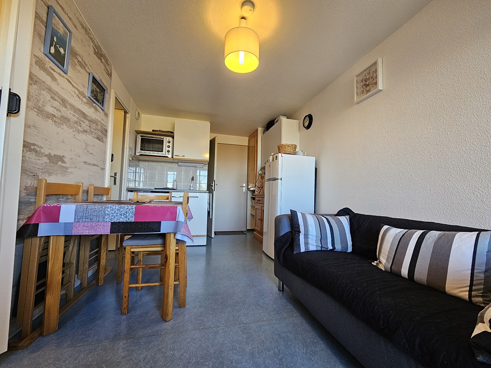 Located in the "Le Cernois" residence, this 23m² studio comprises a main room with a kitchen area and a bench. A first sleeping area with 80cm bunk beds and a second sleeping area with a 140cm bed.