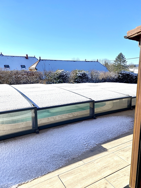 With its 4 bedrooms, 3 bathrooms, fully-equipped kitchen opening onto the living room, sheltered terrace, private swimming pool for sunny days and Nordic wood-burning stove for snowy days, this Finnish wooden cocoon will make your stay a real haven of peace, offering all the comfort you need to relax.