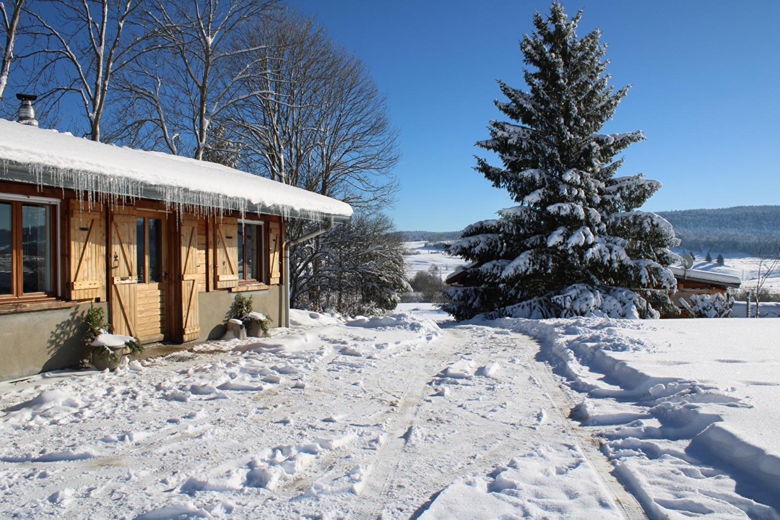 Detached single-storey chalet situated in the heart of nature, at the foot of the cross-country ski runs and at the start of numerous hiking trails. Fully-equipped kitchen area, living room with wood-burning stove (wood provided free of charge), 2-seater sofa bed, bedroom with 2-seater bed, integrated shower room and toilet. Additional electric heating. Adjoining unfenced plot, garden furniture, barbecue. Garage for motorbikes and bicycles. No washing machine in winter.
