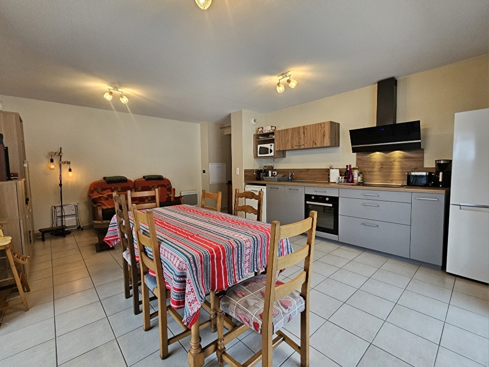 Located in the "Le Clos des Rousses" residence, this 60m² flat on the 1st floor comprises an entrance hall with 90cm bunk beds and a main room with kitchen/dining area and sofa. Two separate bedrooms with 140cm beds. Separate shower room and WC. Exterior access onto a balcony completes the apartment. Private underground parking. View to the rear of a supermarket.