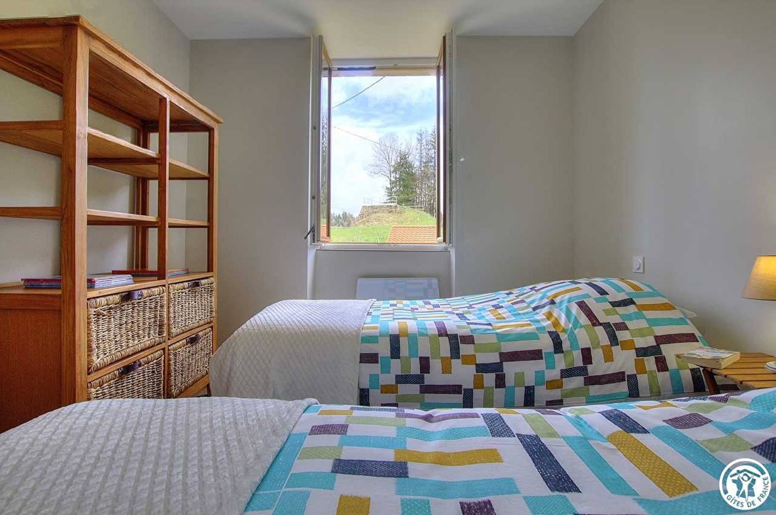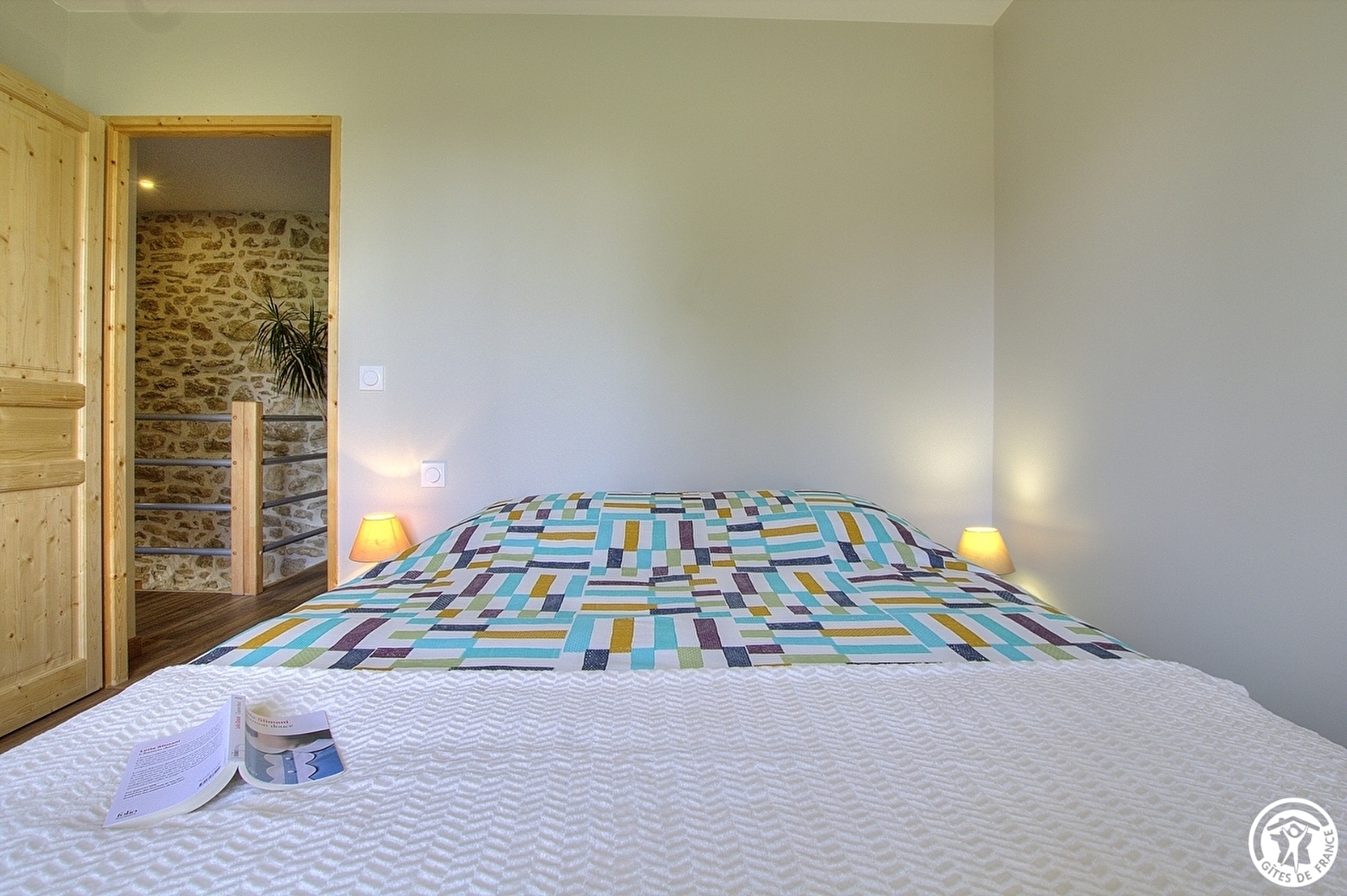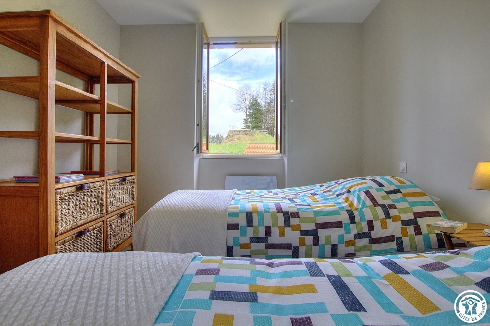 The entrance with its 4 steps leads to a large living room. Independent WC. On the upper level, two bedrooms each with two single beds 80*200 which can be joined together or not.
