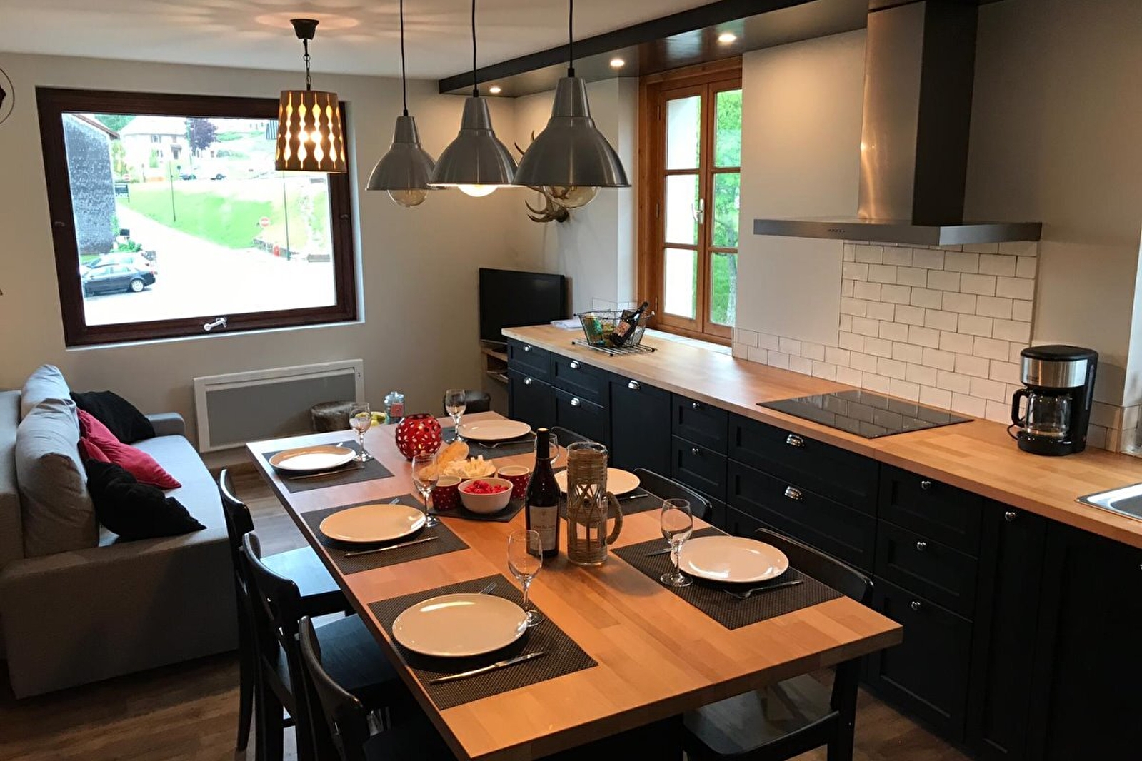 New contemporary style flat on the second floor of the "Crêt de la Neige", a former hotel refurbished as a holiday residence with 3 bedrooms, 2 shower rooms and WC for 6 people. It is made up of: - a living room - lounge - well-equipped fitted kitchen. - 3 bedrooms with 2 beds 140x190 and 2 beds 90x200. A ski locker on level 0 is available. On request, possibility to rent duvet covers and/or household linen. For extra charge: bed linen, household linen and towels : 20 € / pers. Each bathroom includes a shower gel and shampoo dispenser. A jewel among the ski resorts of the Jura Mountains, the Monts Jura- Lélex resort is renowned for its exceptional environment, in the heart of the Haut-Jura Regional Nature Park and the Haute Chaîne Nature Reserve with 49 downhill ski runs and 120 kms of cross-country skiing, The Valserine, a 1st category river for fishing, numerous winter and summer hikes on the Jura Massif (Crêt de la neige), snowshoeing, mountain biking, tennis, golf at Mijoux (10 km), 40 km from Geneva.