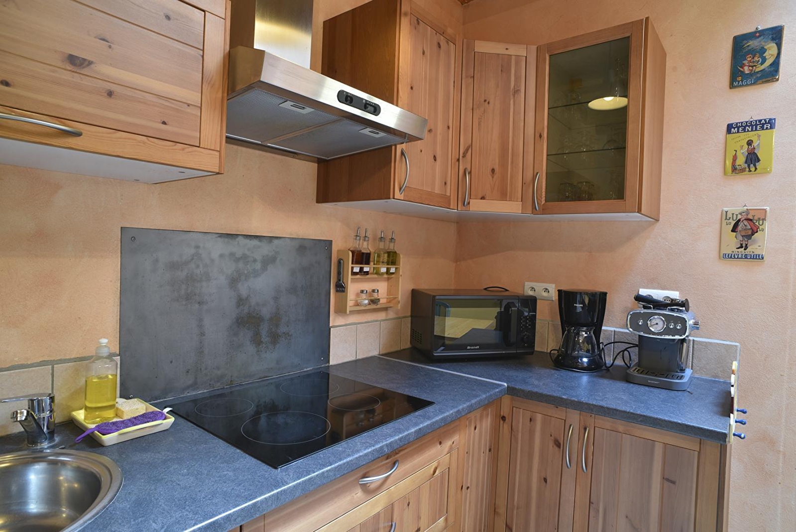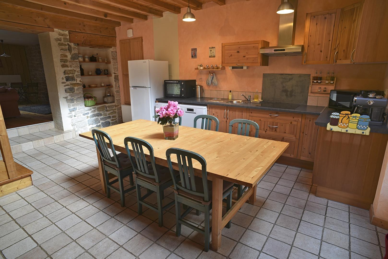 The entrance to the gîte leads to the kitchen, which has all the equipment you need to make everyday life easier. Adjoining the kitchen is a spacious lounge where you can relax, chat or daydream in front of the warmth of the wood-burning stove.