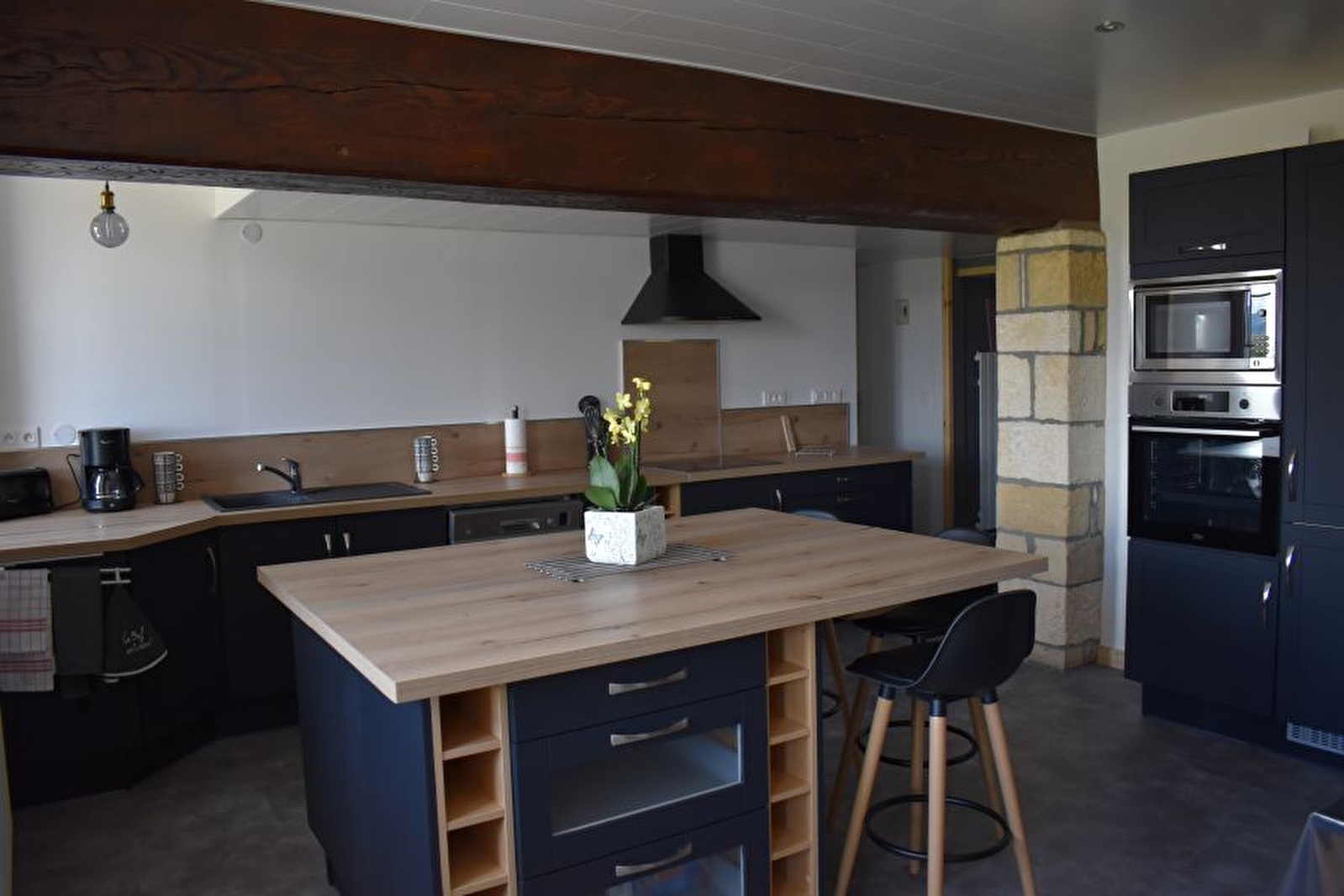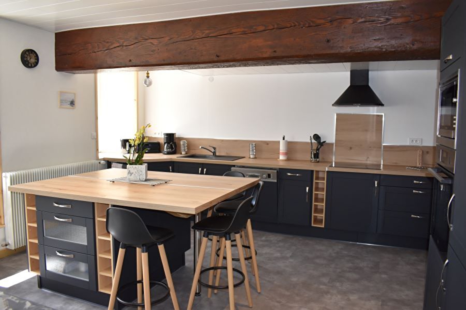Located on the edge of the road leading to Champagnole and Pontarlier at an altitude of 836 meters, in a large comtoise house adjoining the owners' house, this spacious gîte (170 m²) has been entirely renovated to offer you maximum comfort.