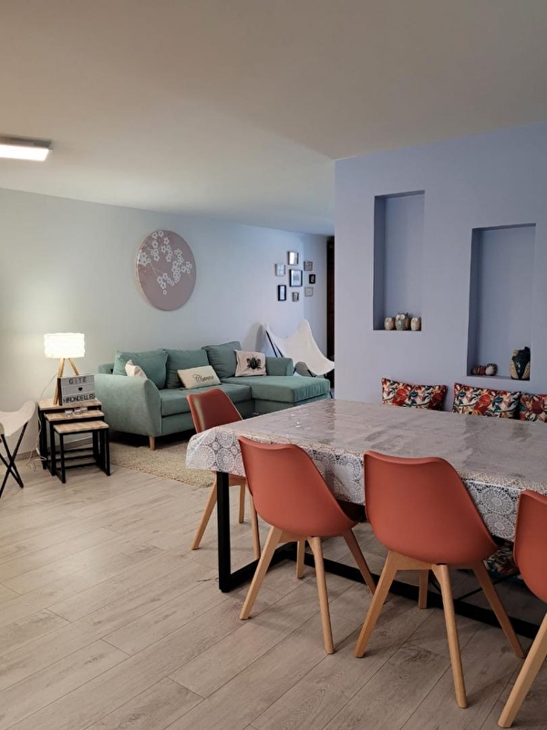 Situated just a stone's throw from the spa town of Lons le Saunier, in a charming village, this semi-detached house (accessible by a few steps) comprises a living room with a fully-equipped kitchen area, a dining area, a lounge with sofa and TV, and 3 bedrooms: 1 with 2 single beds and 2 each with a double bed (160*200), a shower room with a large walk-in shower and a separate toilet. Outside, there is a small east-facing terrace with garden furniture and barbecue. For your comfort, bed linen and towels are provided. Ideally located: wooded playground 5 minutes away, with children's games, petanque area and table tennis. You can visit the picturesque villages of Chateau-Chalon and Baume les Messieurs (20 minutes by car) and reach the lake district in around 30 minutes. As it is situated in a cul-de-sac, you can only drop off your luggage. Parking is available on the village square 100 m away.