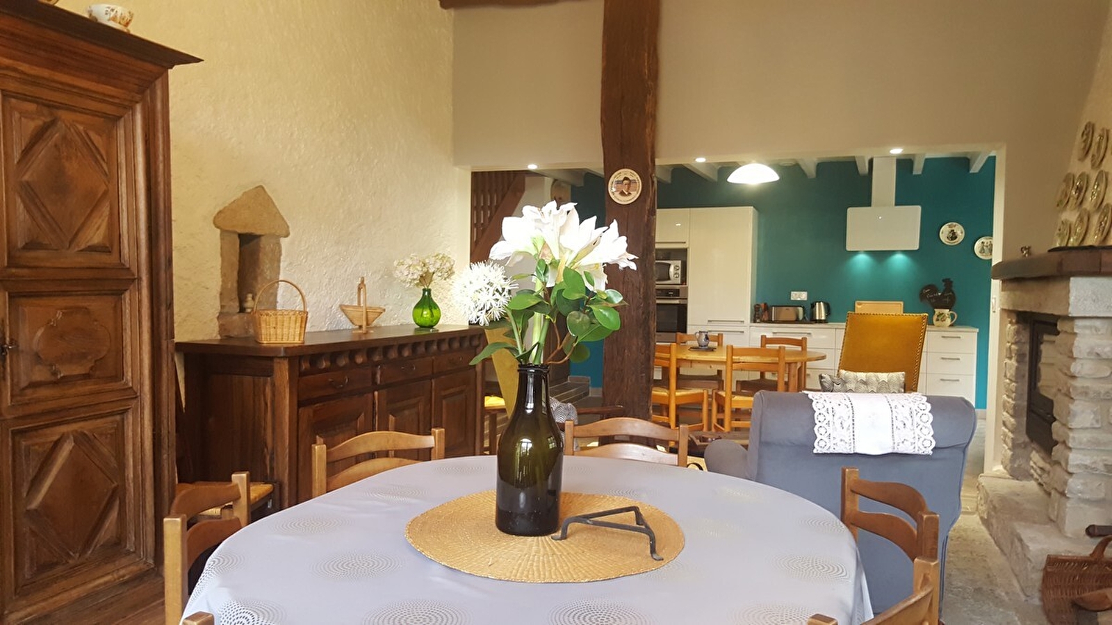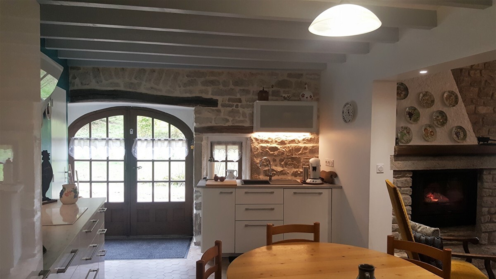 In the heart of the Jura vineyards, close to the villages of Baume les Messieurs and Château-Chalon, come and discover this gîte in a beautiful stone house, adjoining another gîte. On the ground floor, there is a large living room with a dining area and sitting room with fireplace, as well as a fully equipped kitchen. Access via the kitchen to the garage, where there is a utility room with washing machine, and a separate toilet. Upstairs, mezzanine lounge with bookcase, sofa and flat-screen TV. Shower room with shower cubicle and wc, and a large bedroom with a 140cm bed, a 130cm bed and a 120cm bed. Outside, adjoining unenclosed grounds beside the river, equipped with garden furniture and barbecue. Garage for motorbikes and bicycles available. Don't wait any longer to book this little piece of paradise! The adjoining gîte (reference G2123 on the Gîtes de France website) can sleep up to 9 people.