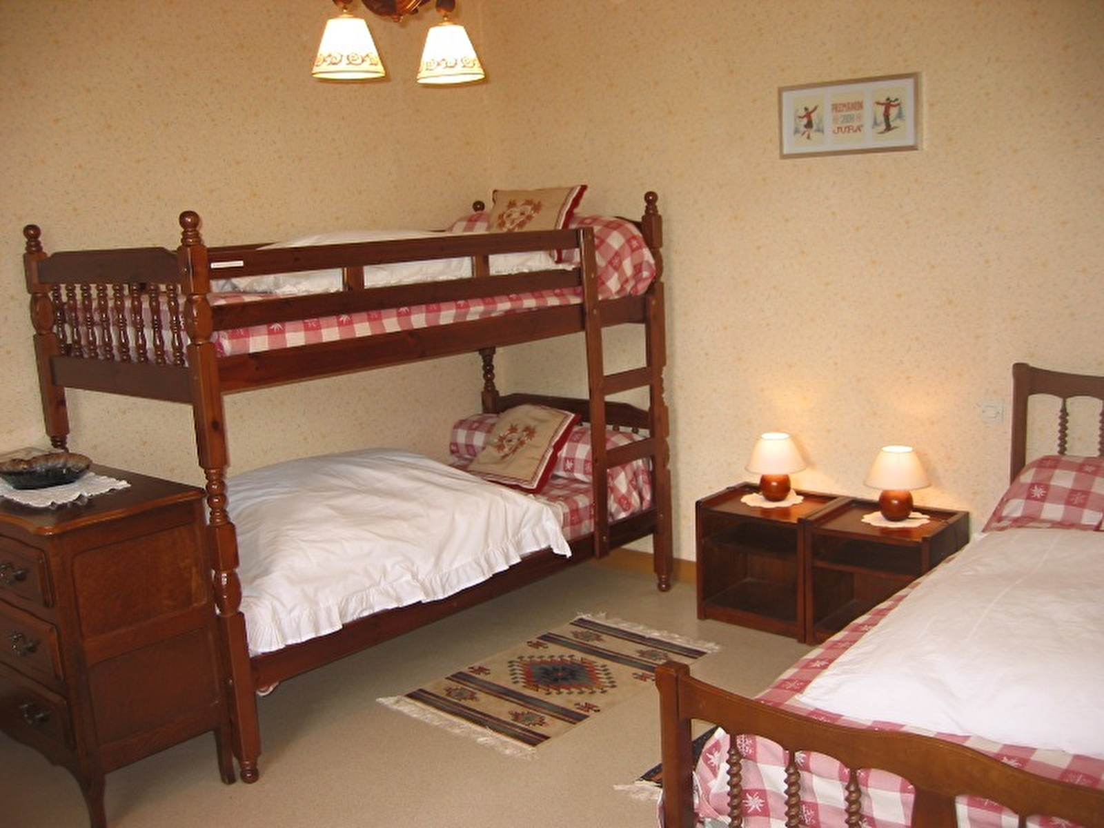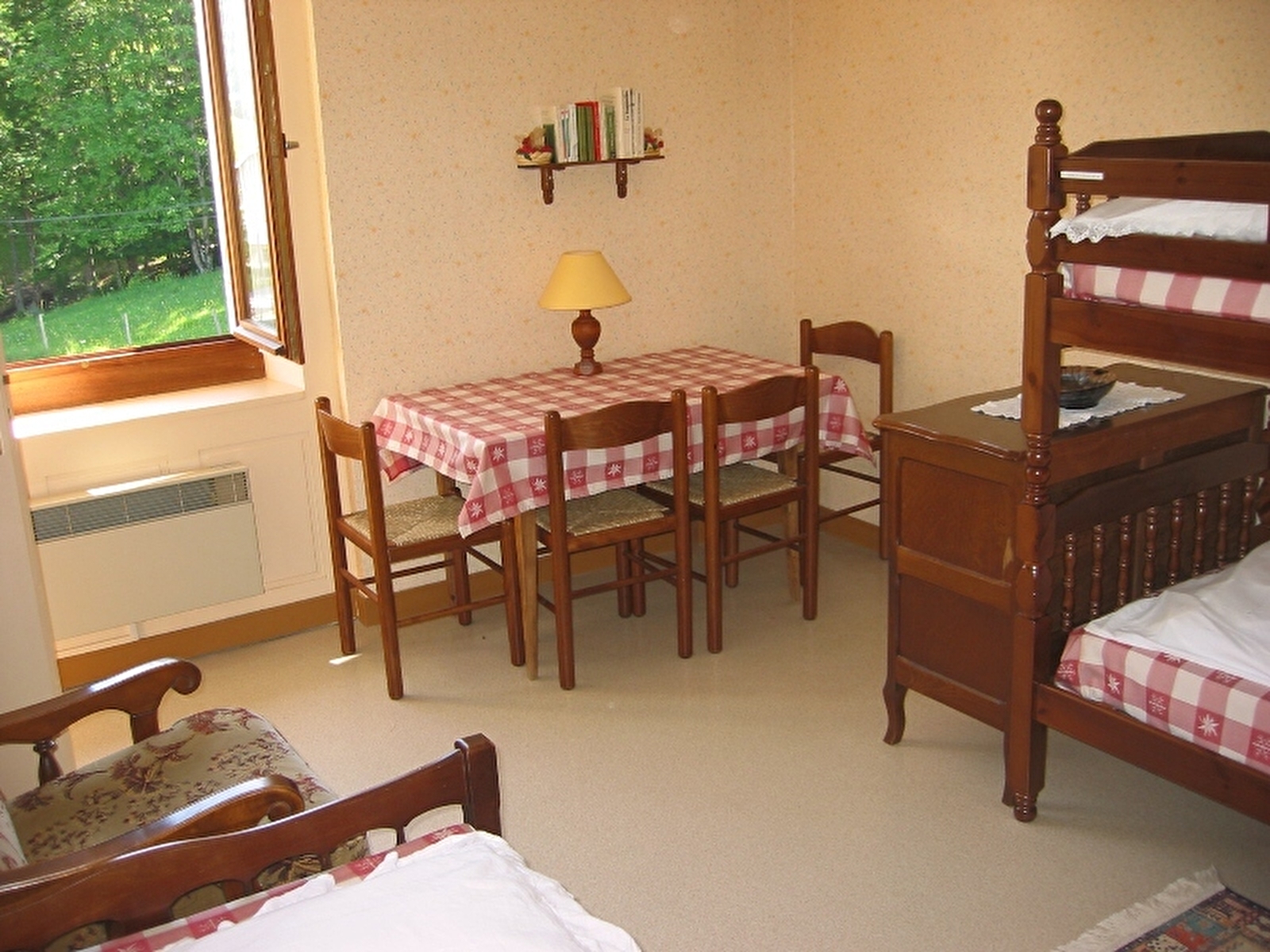 Comfortable flat ideally located close to the ski slopes and numerous hiking trails. 2nd floor: living room with kitchen, dining area and seating area, 1st bedroom with 1 double bed (140cm) and 2nd bedroom with 1 single bed (100x190cm) and 2 bunk beds (1 single). Shower room with shower, 2 washbasins, separate wc. Unenclosed grounds around the gîte with garden furniture. Private garage. Pets welcome: please ask the owners.