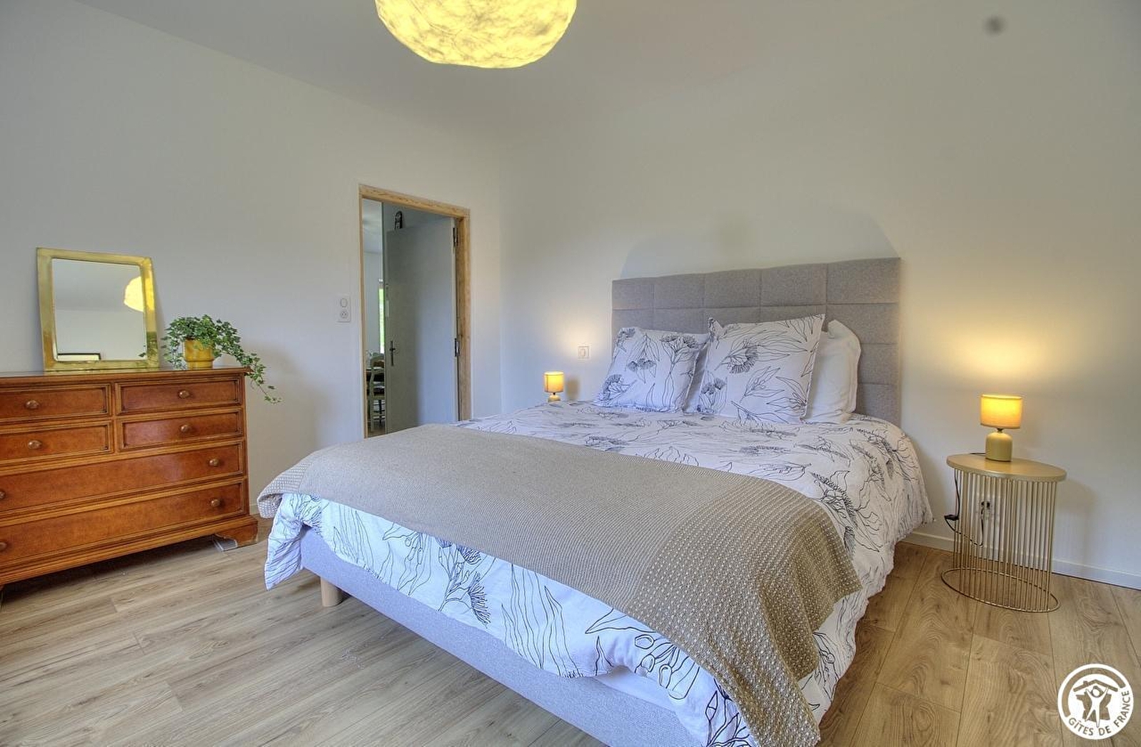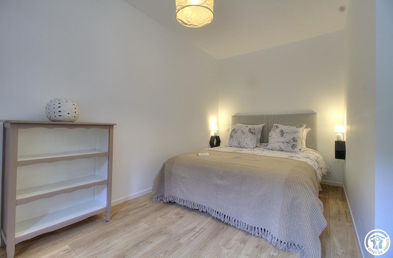 This family home can accommodate up to six people and offers a warm atmosphere with its bright spaces. You'll enjoy a cozy living room (with a sofa bed), a fully equipped kitchen, and two bedrooms. The private terrace, which is not attached to the cottage, allows you to enjoy a coffee at sunrise or a dinner overlooking nature, in a soothing, green setting.