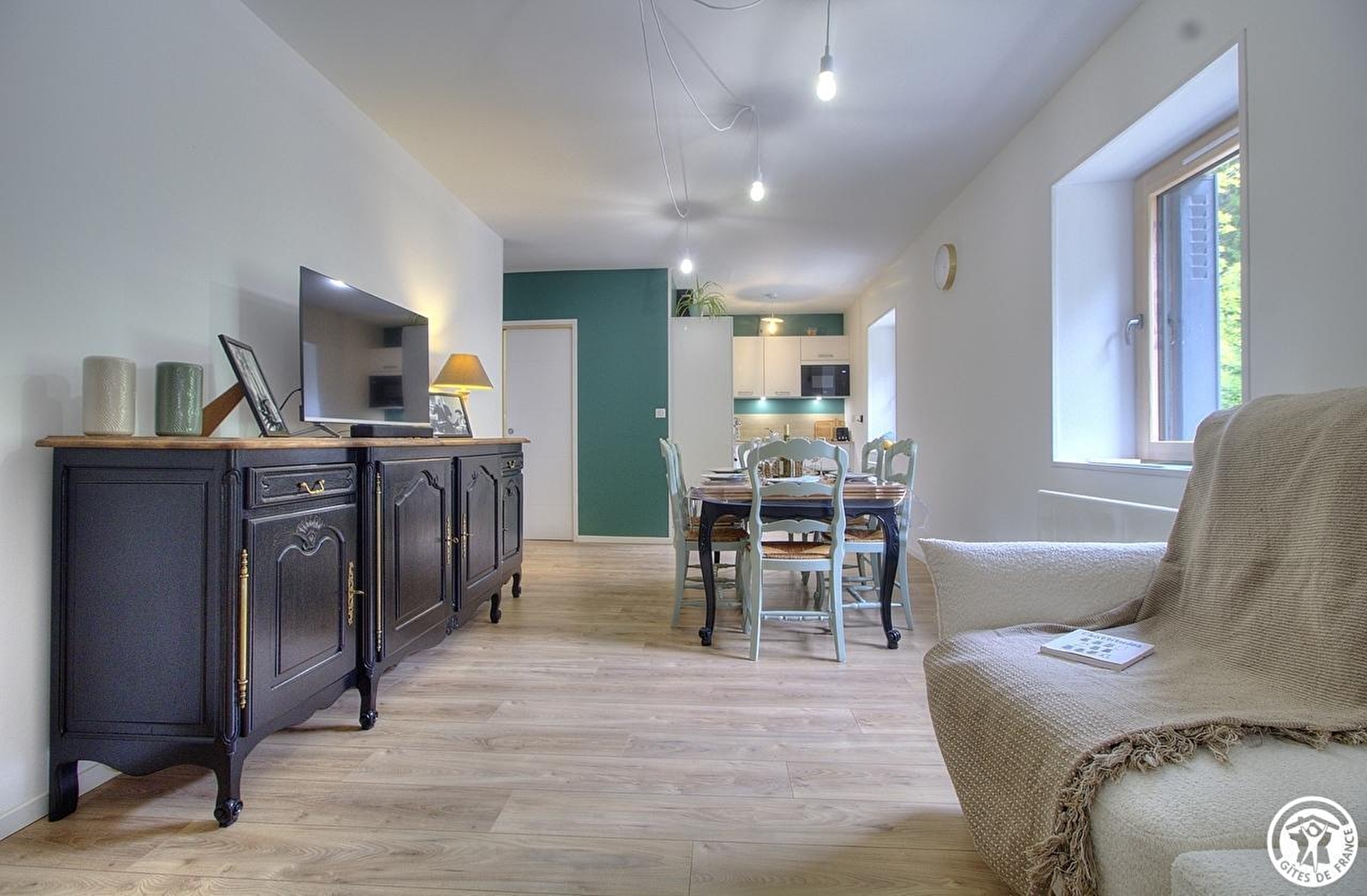 This house, attached to a guest room, combines the charm of Jura woodland with modern comforts. From the first autumn evenings, let yourself be enchanted by the roar of the deer echoing through the nearby forest—a rare and unforgettable experience for lovers of the mountains and peace and quiet.