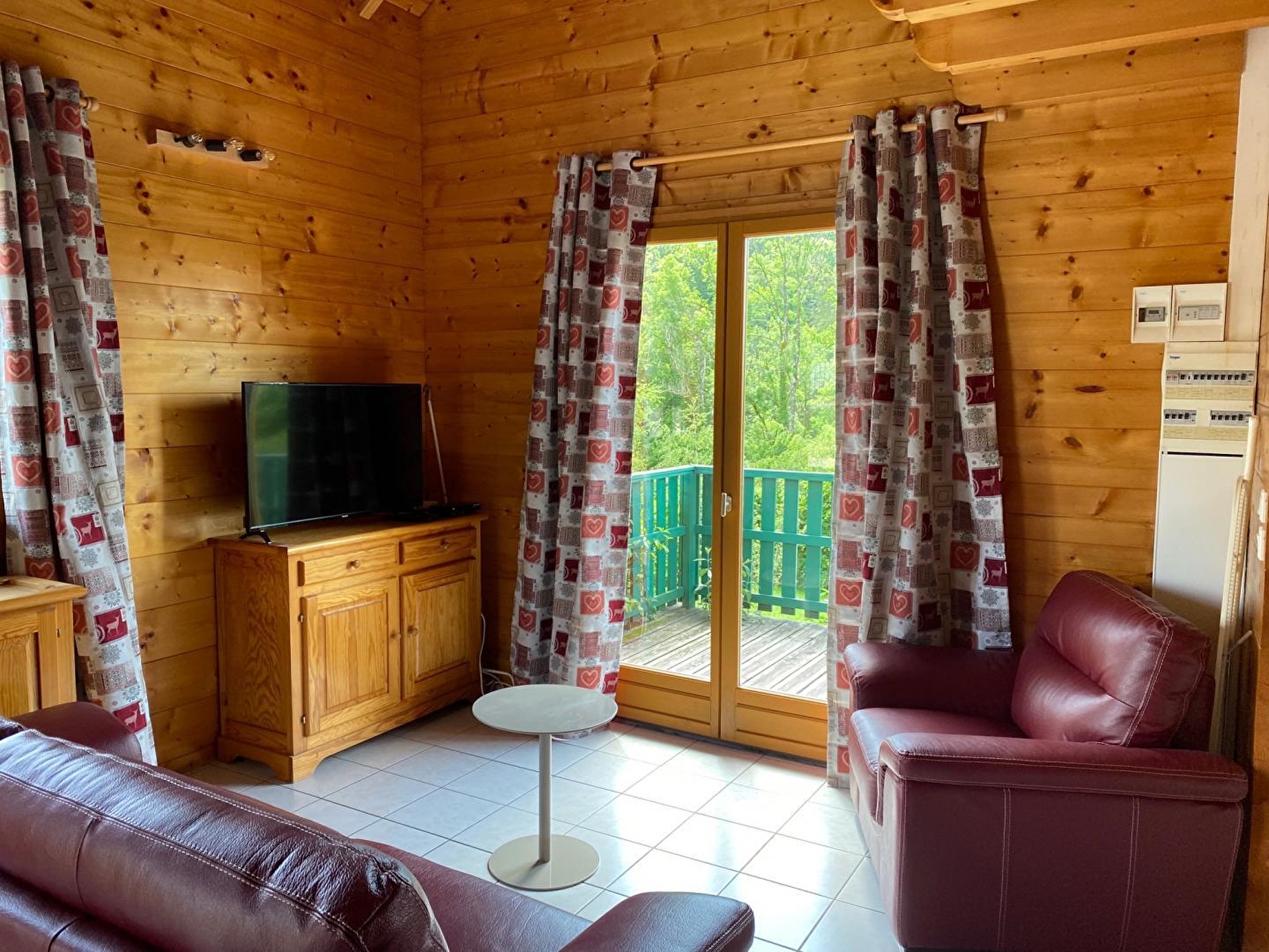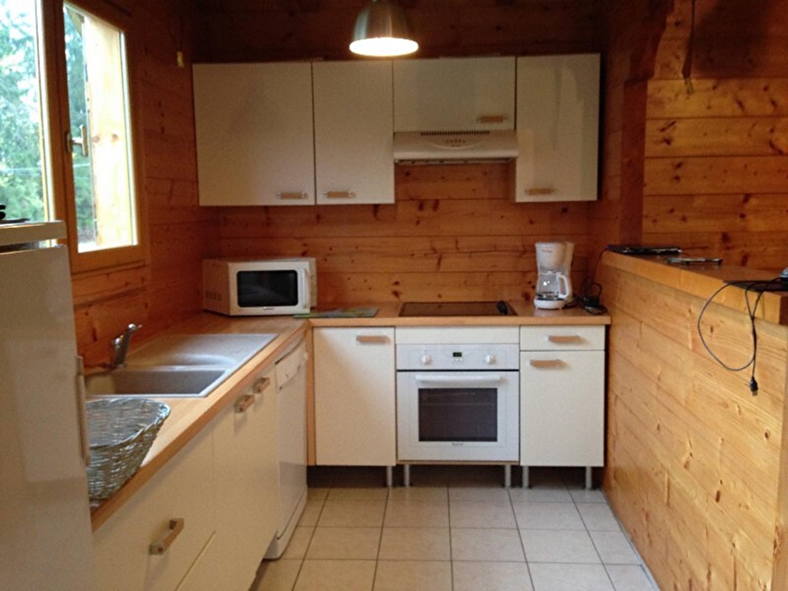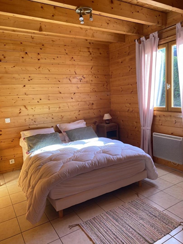 In a village, close to the Chalain lake (sand beach and water activities), with all shops and services, next to three other identical chalets. At the ground floor: living-room with kitchenette american style , microwave. Sitting-room with sofa,TV. Bathroom, toilets. 1st bedroom with 1 double bed. On the first floor: mezzanine with 1 bedsofa, 2nd bedroom with 2 single beds. Telephone (card system). Private parking. Private bicycle garage. Private terrace (oriented south), garden furnitures. Bedlinnens supplied. Cleaning included. Name of the chalet : Les Hérissons.