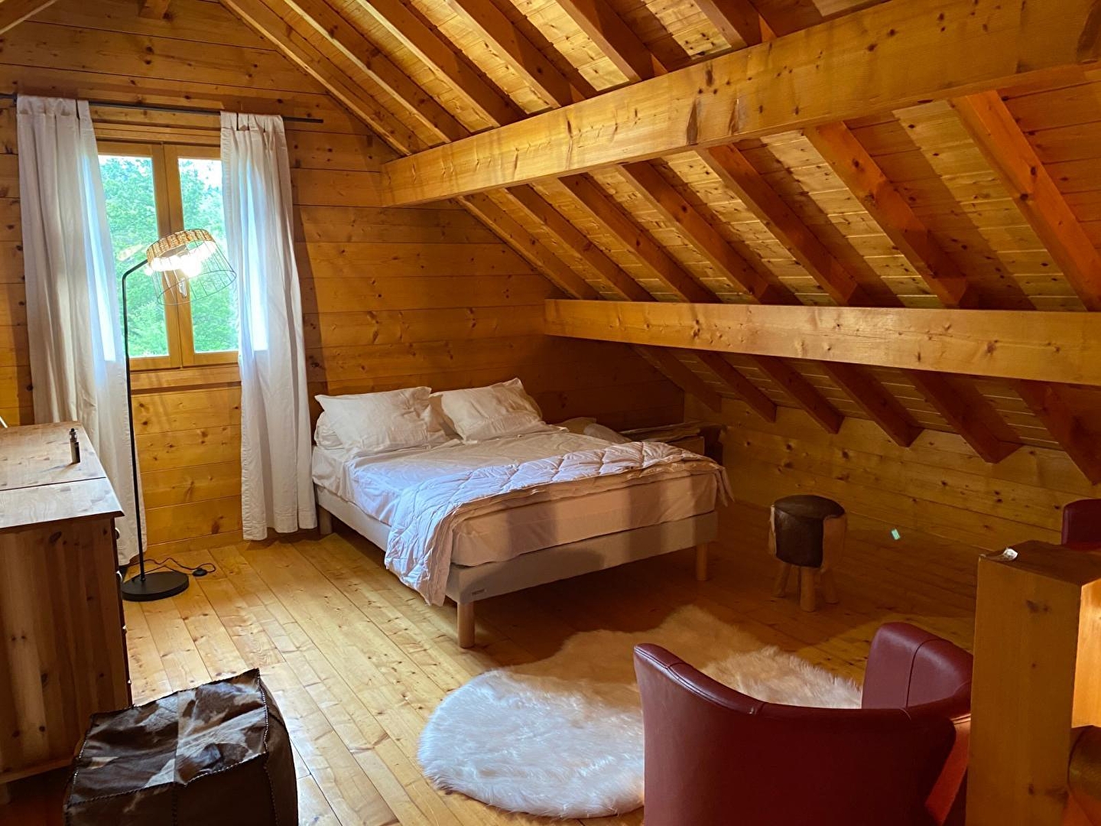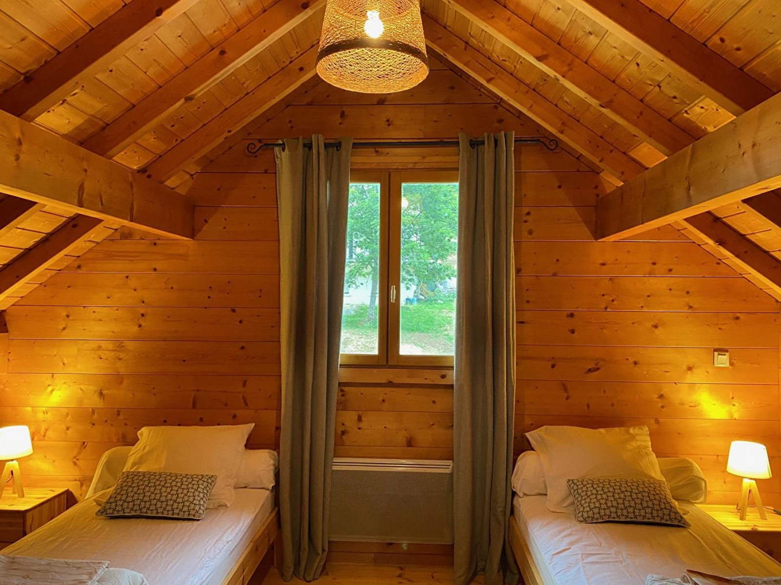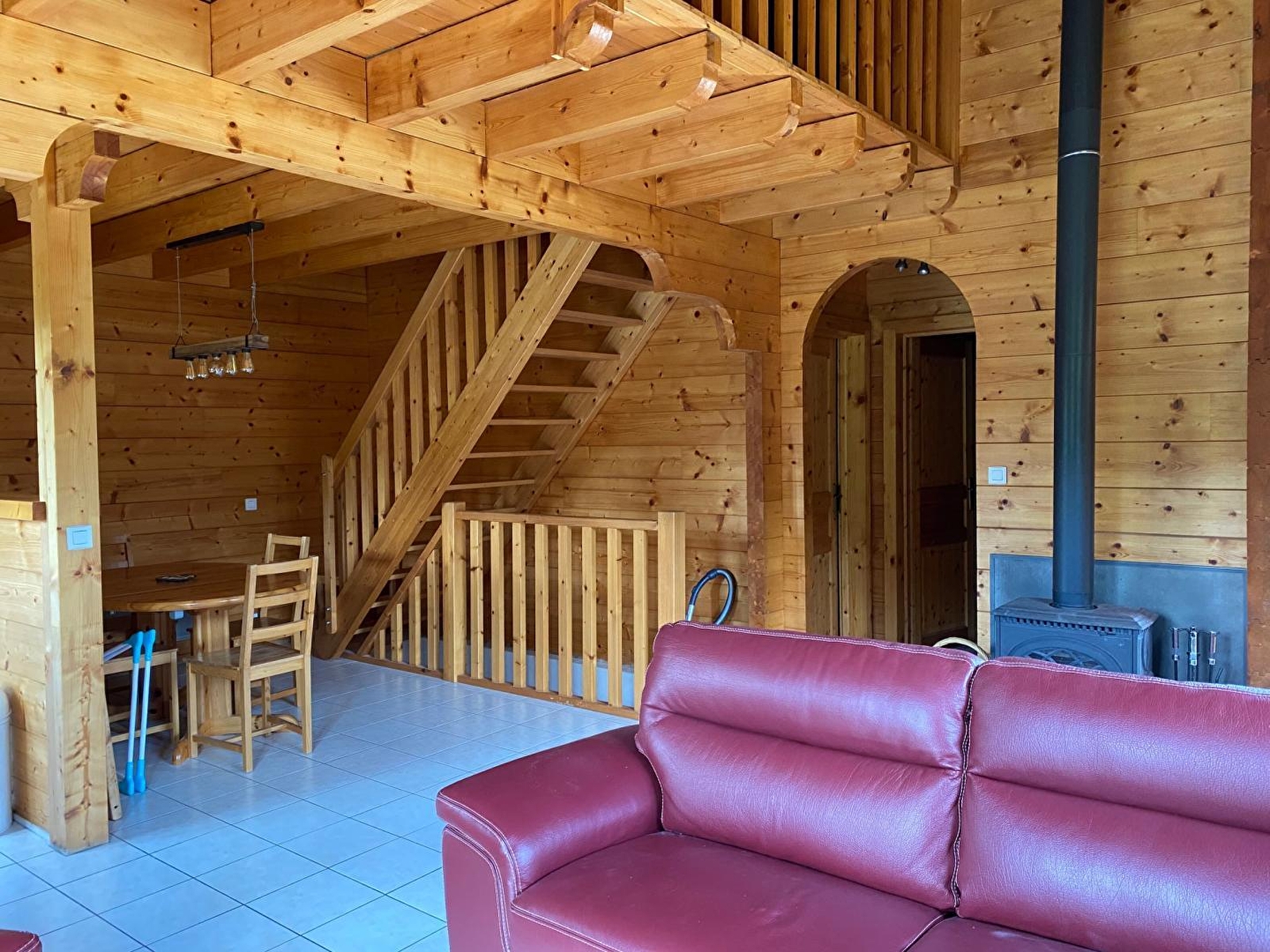 In a village, close to the Chalain lake (sand beach and water activities), with all shops and services, next to three other identical chalets. At the ground floor: living-room with kitchenette american style , microwave. Sitting-room with sofa,TV. Bathroom, toilets. 1st bedroom with 1 double bed. On the first floor: mezzanine with 1 bedsofa, 2nd bedroom with 2 single beds. Telephone (card system). Private parking. Private bicycle garage. Private terrace (oriented south), garden furnitures. Bedlinnens supplied. Cleaning included. Name of the chalet : Les Hérissons.