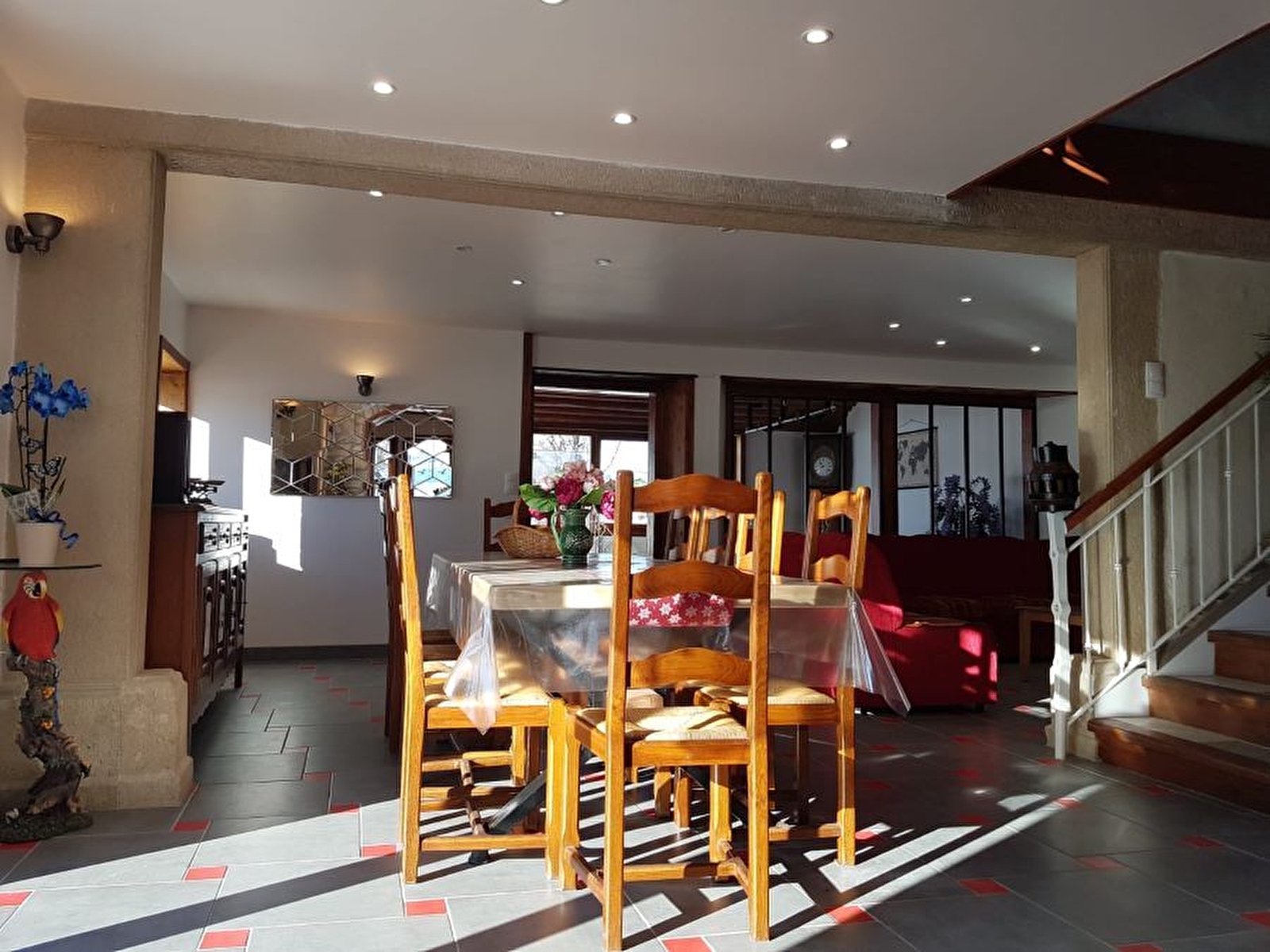Do you love peace and quiet and nature? If so, then this completely renovated house will appeal to you with its many assets... It comprises an entrance hall on the ground floor, a large living room with lounge and dining area, a fully-equipped fitted kitchen, a bedroom with 1 x 160cm bed (35cm high mattress) and 1 x single bed with en suite shower room and WC accessible to people with reduced mobility, and a utility room with washing machine and tumble dryer. Upstairs, a games room with pool table and table football and 4 bedrooms with 160cm beds (35cm high mattresses), each with en-suite shower room and WC. Pellet-fired central heating (extra charge). Covered shelter, petanque area, terrace, barbecue. Utilities included: cold water, gas and electricity