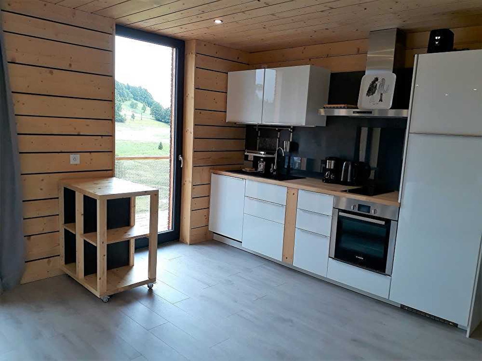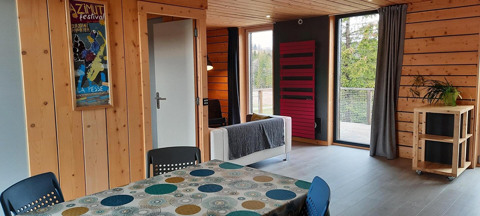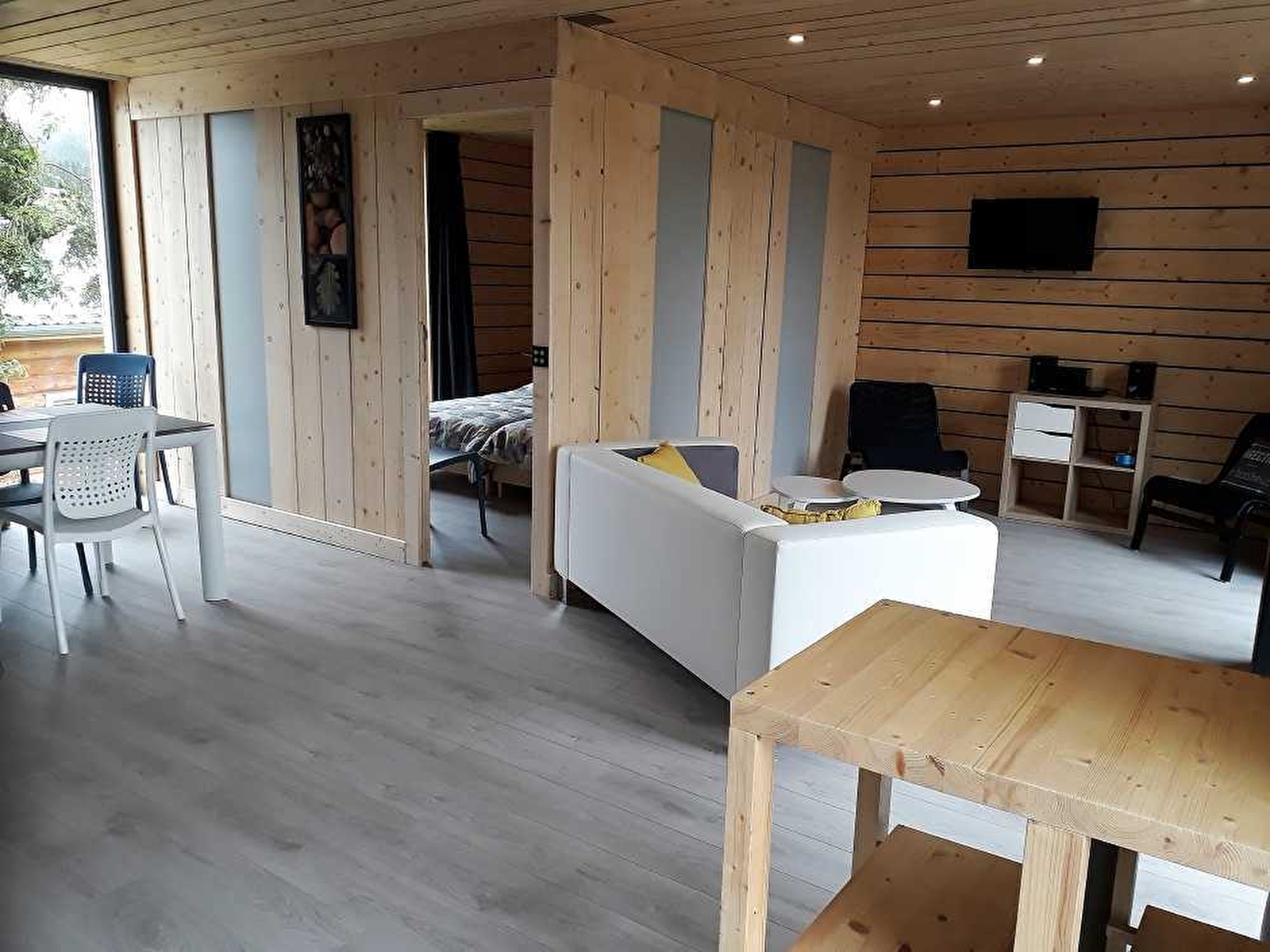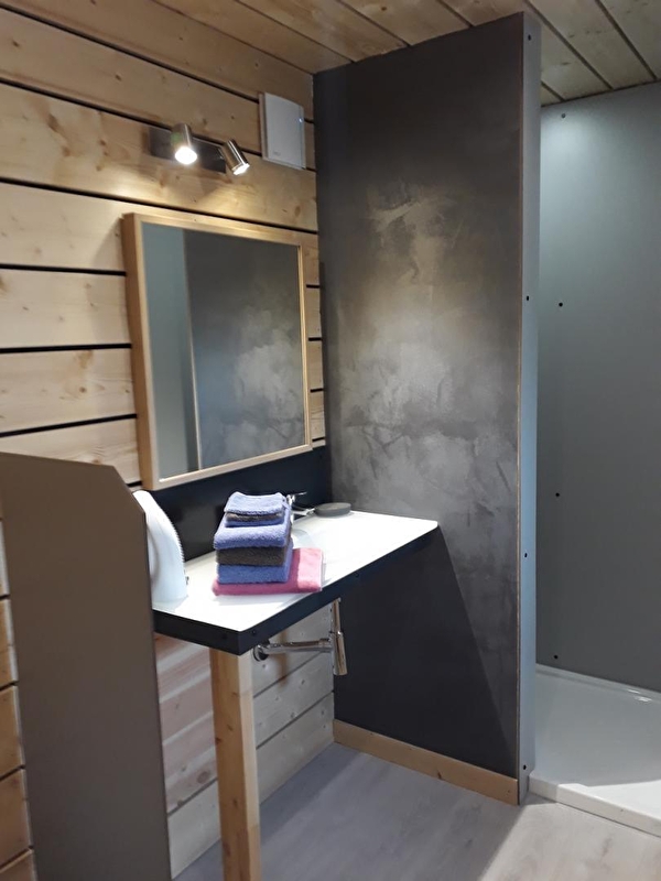 A contemporary, upmarket lodge, ideal for a couple, or a couple with a child. It has a total surface area of 60m² and is labelled "Gîtes de France 4 épis"