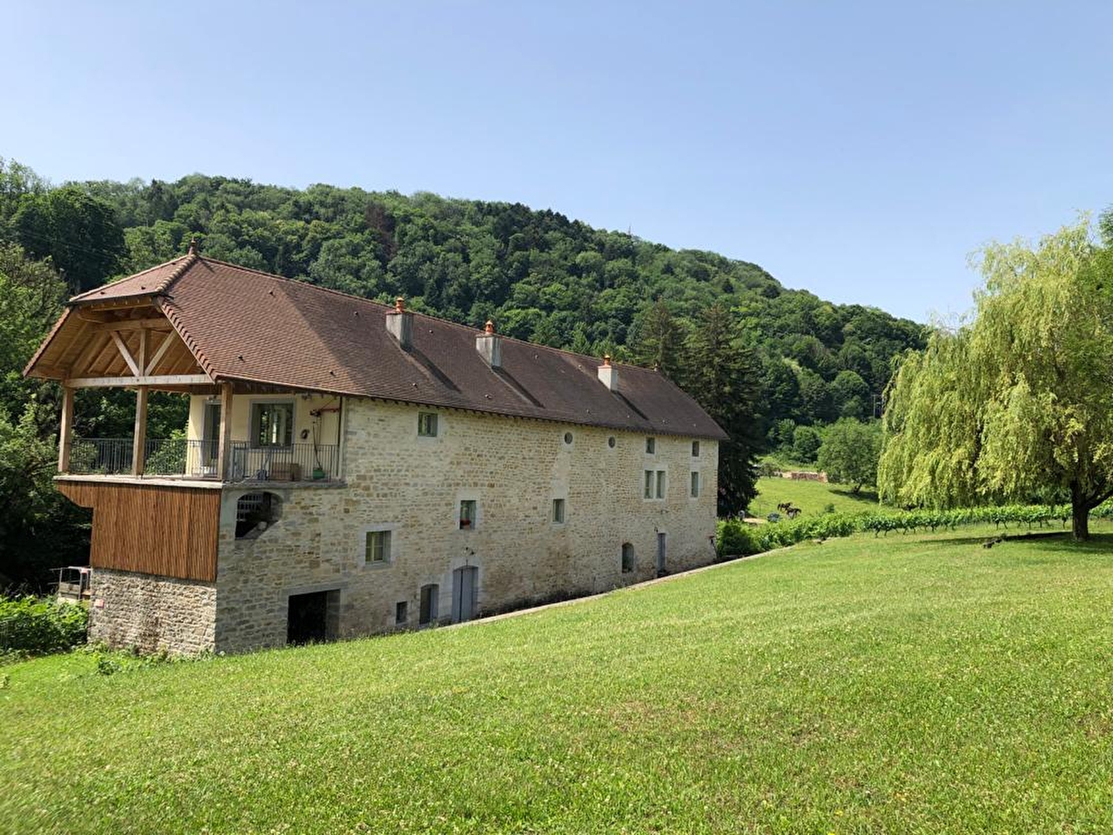 Welcome to Moulin de Cesy, built in the 15th century and steeped in history, on the banks of the Cuisance. There is off-street parking and a closed garage is available on request. A completely separate entrance leads to the gîte on the 2nd floor. It comprises a living room with a fully-equipped kitchen and sitting area, a bedroom with 1 double bed (160*200), a second bedroom with 2 single beds, a shower room and 2 separate WCs (one of which is in the 1st bedroom). Outside, a magnificent 25 m² covered terrace overlooks the lake. It is equipped for outdoor living and has a large plancha. Here you can admire the wildlife (trout, ducks, kingfishers, etc.) and the surrounding flora. You can also take a stroll in the huge park by the river and sit at the back of the clearing around a small table. The historic centre of Arbois is just a 10-minute walk away, where you'll find all the shops and numerous restaurants. Ideally situated for discovering Poligny, capital of the Comté region, Salins les Bains, a spa town, and the most beautiful villages in France, Baume les Messieurs and Chateau-Chalon. Note: the mill generates electricity using an Archimedes screw - this site is not suitable for young children due to the proximity of the river.