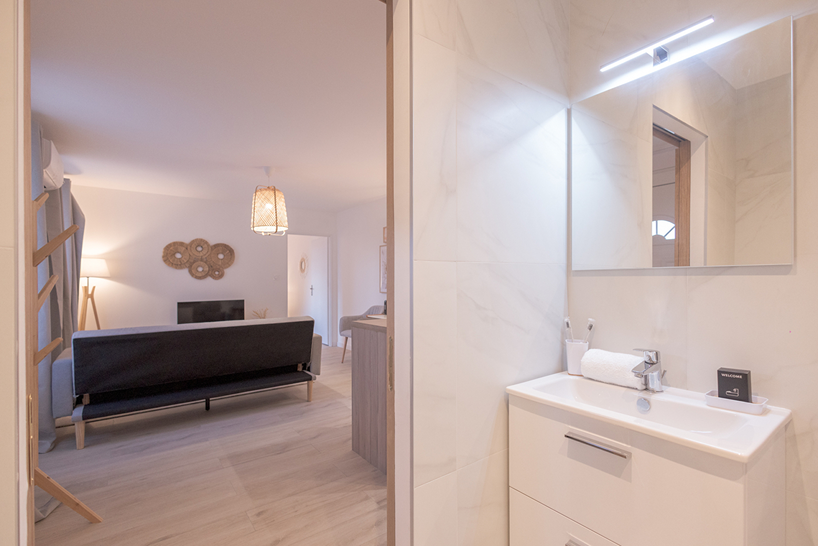 Welcome to this charming, fully renovated T2 apartment, located just a few steps from the city center. Ideal for up to 3 people, this cocoon combines modern comfort, meticulous decoration and a warm atmosphere. Whether you're away on business, with friends or as a couple, you'll quickly feel right at home.