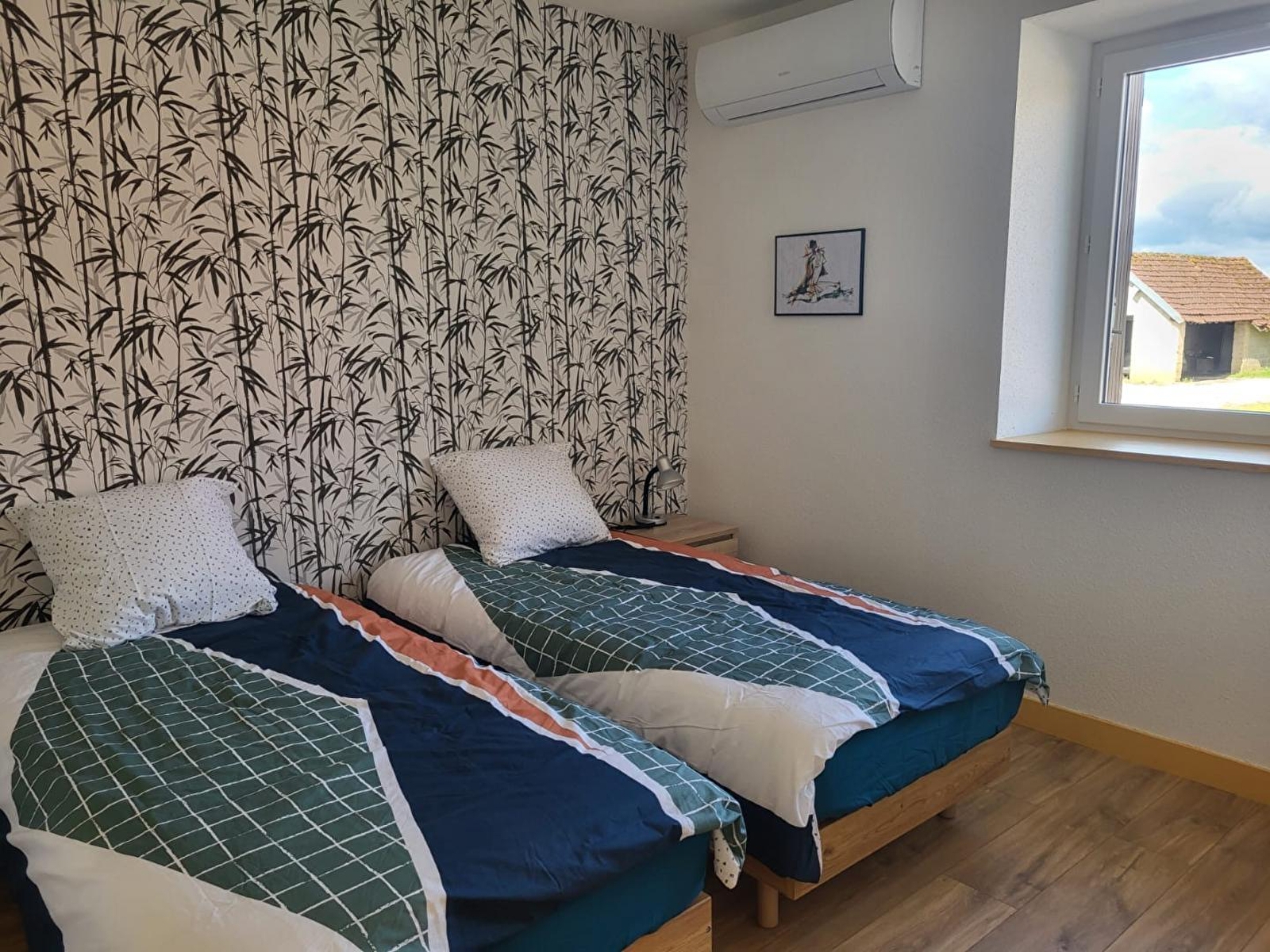 In the heart of the village, this house adjoins another gîte and comprises, on the ground floor, a living room with fully-equipped kitchen, a sitting room with TV, a shower room with walk-in shower, a separate toilet and 2 bedrooms: one with 2 single beds and the other with a double 160cm bed. Upstairs, a bedroom with 2 single beds and a shower room with WC. Reversible air conditioning. Outside, a small garden with garden furniture, deckchairs and barbecue. A storage room is also available for bikes and pushchairs.... Bonus: gîte accessible to people with reduced mobility. A fruit shop and mini-market are just 50 metres away. Ideally situated for hikers and cyclists, heritage lovers will not be outdone by the discovery of Dole, a town of art and history, or the picturesque villages of Baume les Messieurs and Château-Chalon. The adjoining gîte can be rented for a total of 12 people (reference G2448).