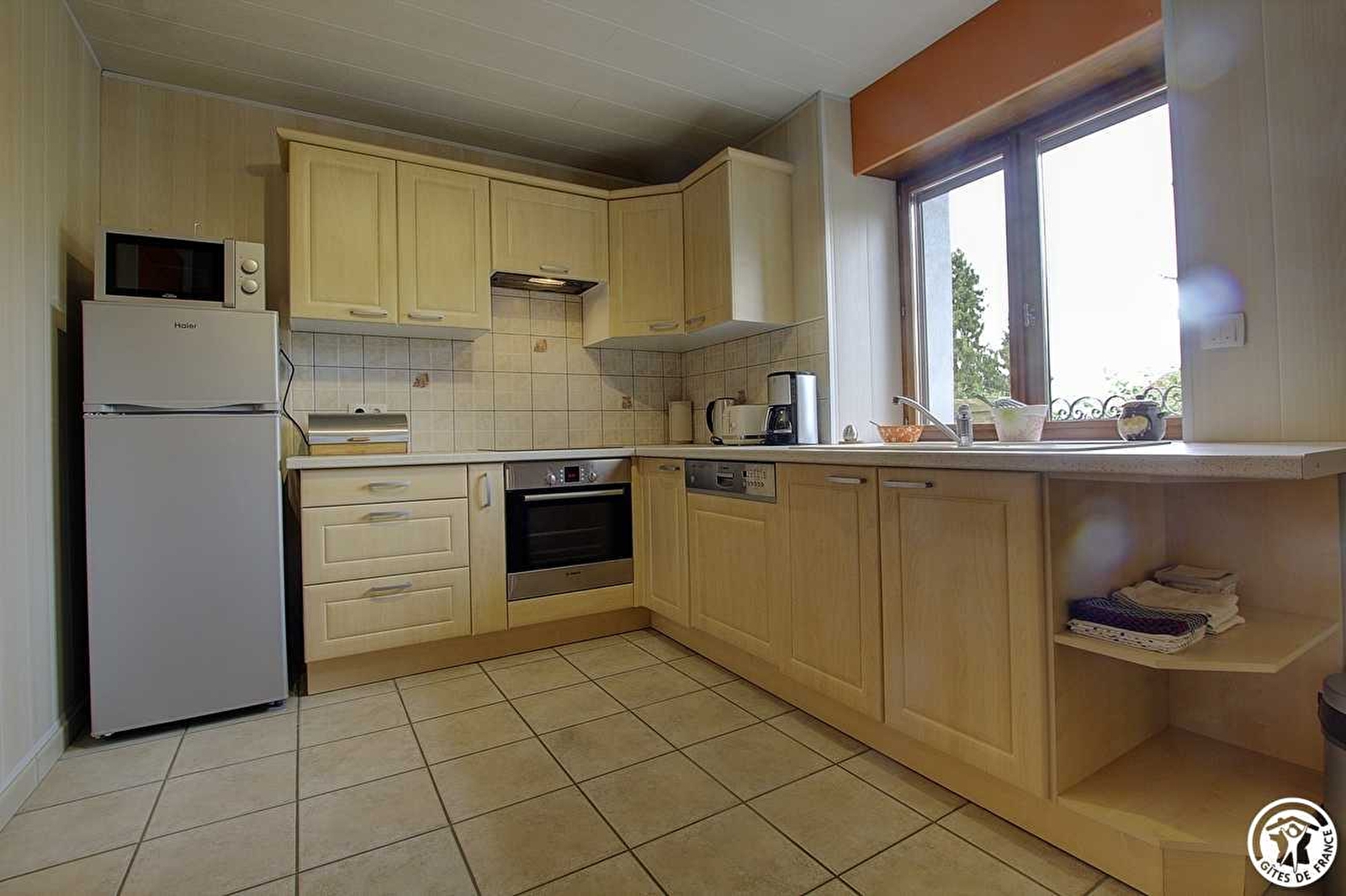 In the heart of Peyrieu, the Gîte "Le Saut Peyrieu" can accommodate up to 4 people and a child (maximum 4 years old). It is located on the closed property of the owners and is adjoining a barn. The independent entrance to the cottage is via 3 steps, and overlooks the main living room including a living room and its relaxation area. On your left, a bedroom with a 140*190 bed with a child's bed. On your right, an equipped and semi-open kitchen; a bathroom and a separate toilet. From the kitchen, a wooden staircase guides you to the bedroom with a 140*190 bed and its private toilet with washbasin. The cottage has a private terrace adjoining the owners' house and a large garden to the delight of young and old alike, to relax without being overlooked. Electric heating. The advantage of this cottage: beds are made on arrival, towels and charges are included. Enclosed and secure parking. You can walk along the Rhône located a few hundred meters from the cottage, discover the peaceful town of Belley (10 km) centered around the cathedral of St Jean le Baptiste and its historical monuments, Aix les Bains 18 km.