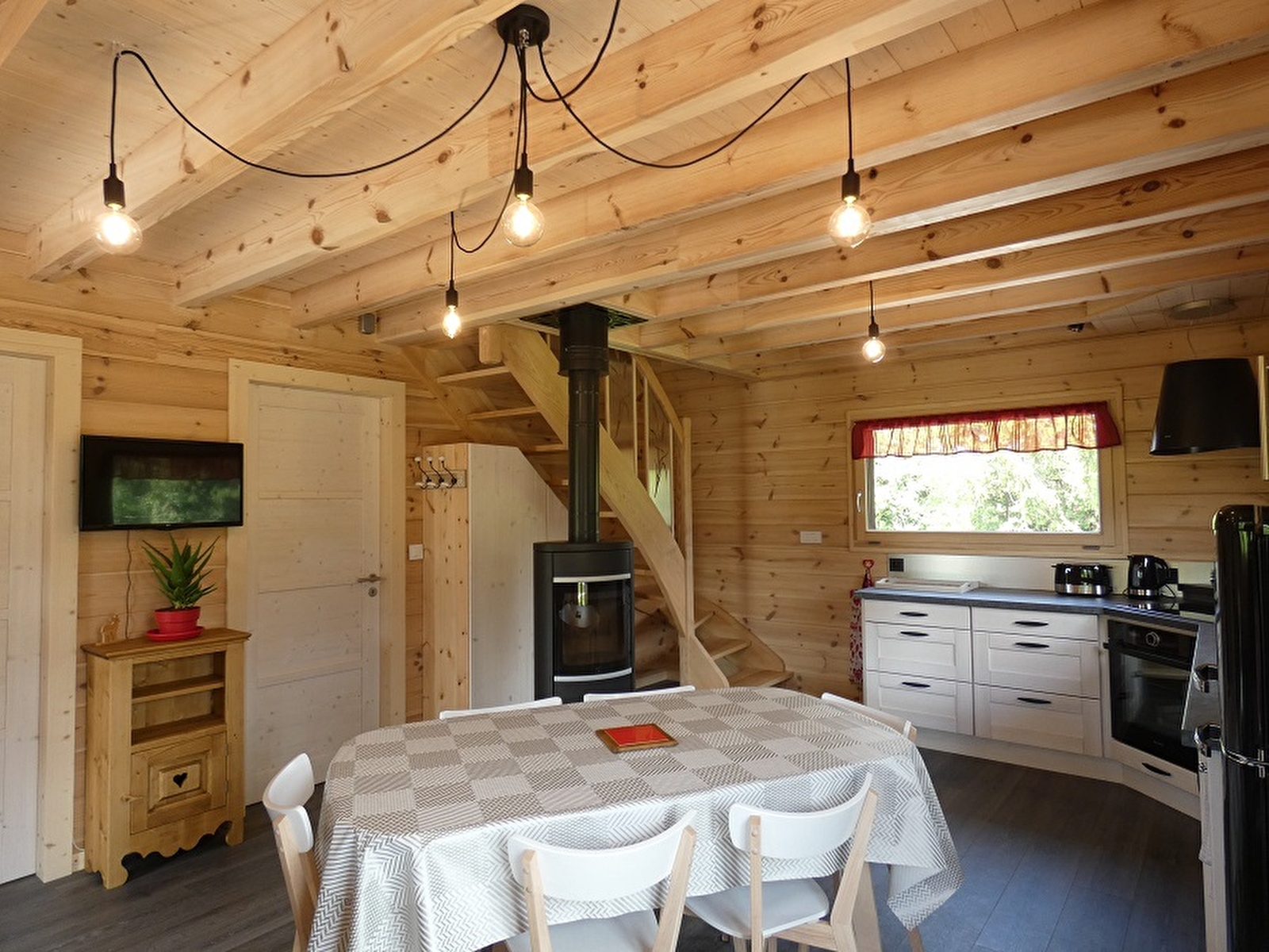 Ideally located just 200 metres from Lake Clairvaux, this ground floor chalet comprises a living room with fitted kitchen, sitting area with sofa and TV, wood-burning stove, bedroom with double bed, bathroom with WC. Upstairs: bedroom with 1 double bed and 1 single bed, lounge with sofa bed and TV, bathroom with WC. Outside: garden furniture, barbecue, children's play area, garden shed for storing motorbikes, bicycles and skis (by prior arrangement). Baby equipment on request: cot, high chair, high chair, potty, bath. 300 metres away: town centre with all shops (butcher, baker, cheese shop, chemist, mini-market, restaurants, doctors....). 200 metres away: lake and beach with children's play area and picnic table Activities close to the chalet: accrobranche, via ferrata, canoeing, fishing, mountain biking, cross-country skiing, hiking, Hérisson waterfalls, eyewear museum, pipe and diamond museum....