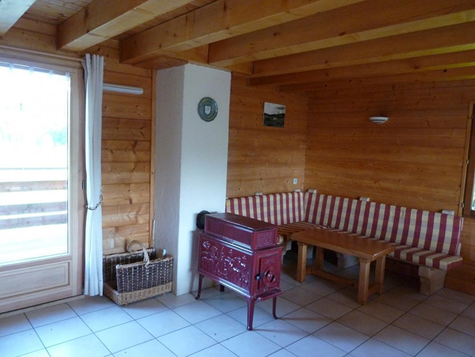 Detached chalet with, on the ground floor: kitchen/living/sitting room with wood-burning stove, bedroom 1: 1 double bed, shower room. On the first floor: bedroom 2: 1 double bed and mezzanine with 4 single beds. Balcony, courtyard and private open garden, garage, garden furniture, barbecue. Electric and wood-fired heating (wood for sale). Home comfort: pressure cooker, vacuum cleaner, iron and ironing board, electric coffee maker, freezer. By request: baby’s cot and highchair.