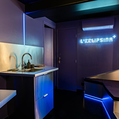 Immerse yourself in a space cocoon where every detail has been designed around the theme of space. Sleep in a high-tech capsule bed with integrated TV, relax under a chromotherapy shower, and adjust the lighting to suit your mood.