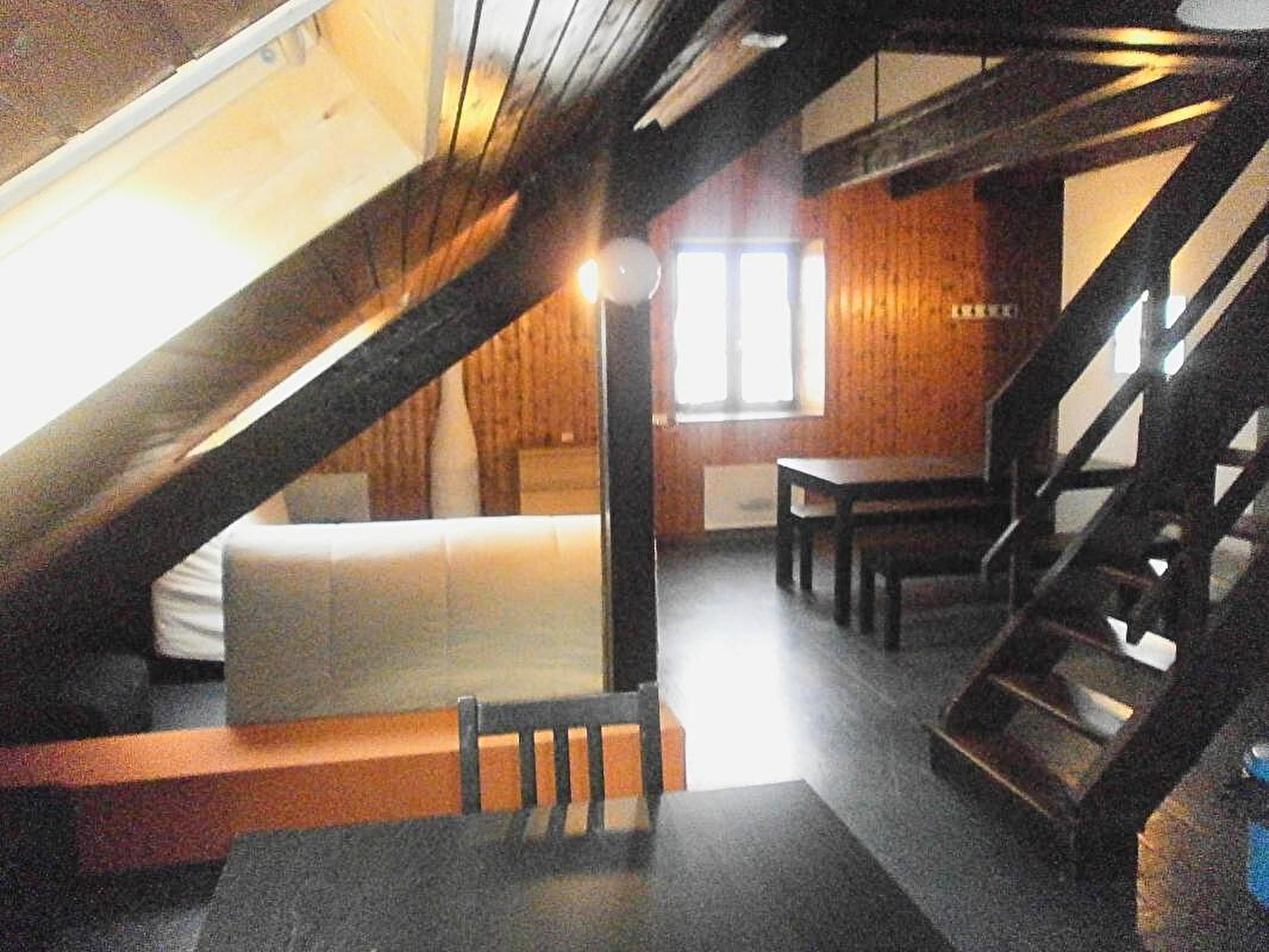 The charming gîte L'Écureuil (50 m²) is on the first floor of the building, accessible by an outside staircase. The entrance leads to a living room with a fully equipped kitchen and a small sleeping area (one single bed), two bedrooms (two single beds in each room) and a shower room. Electric heating included. Shared washing machine in the building.