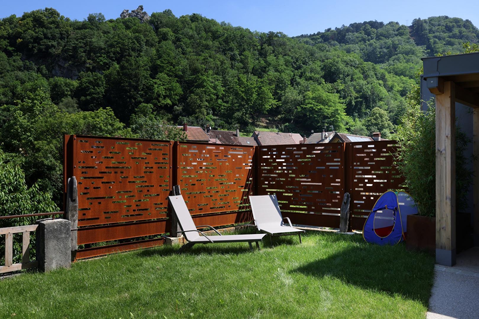 At the foot of a Jura hillside, 300 m from the town centre, nature comes to town. The property has a delightful country feel: gardens, orchard, canal and river. The water rests, sings or cascades. The terraces look out over the rolling hills and surrounding escarpments. The city's many resources and nearby traffic are all but forgotten. This gîte, converted in 2024 from a carpentry workshop built on top of a very old mill, offers a comfortable welcome in a neat open-plan room with an imposing volume: 90m² and 8.5m under the ridge, the living room/lounge/kitchen/dining room opens onto the mill wheel in the basement. This wheel comes to life as you please. There is also a 45m² kitchen, lounge, dining room, games room and television room. A total of 2 fully equipped kitchens. A rare advantage: the same group - families or friends - can combine independence and communal living in a single rental. The Jura mountains and the great outdoors mean that you'll have fondue, raclette, pierrade and plancha facilities at your disposal.