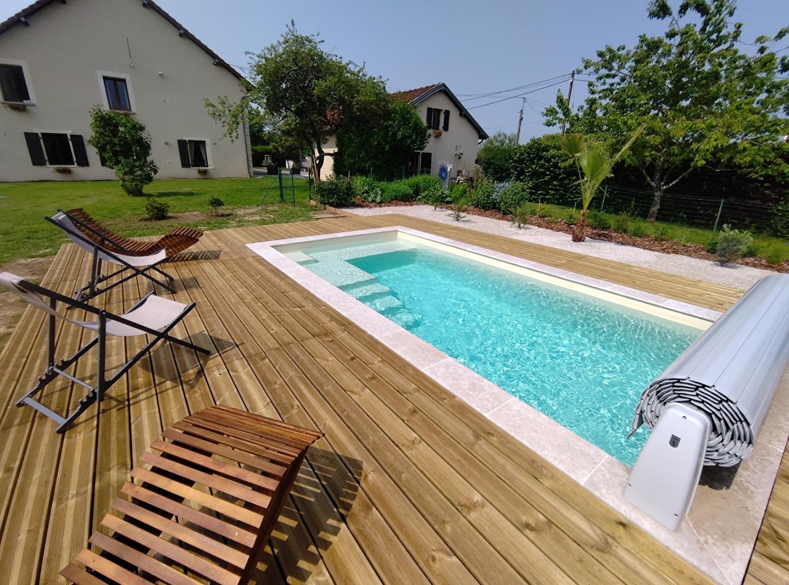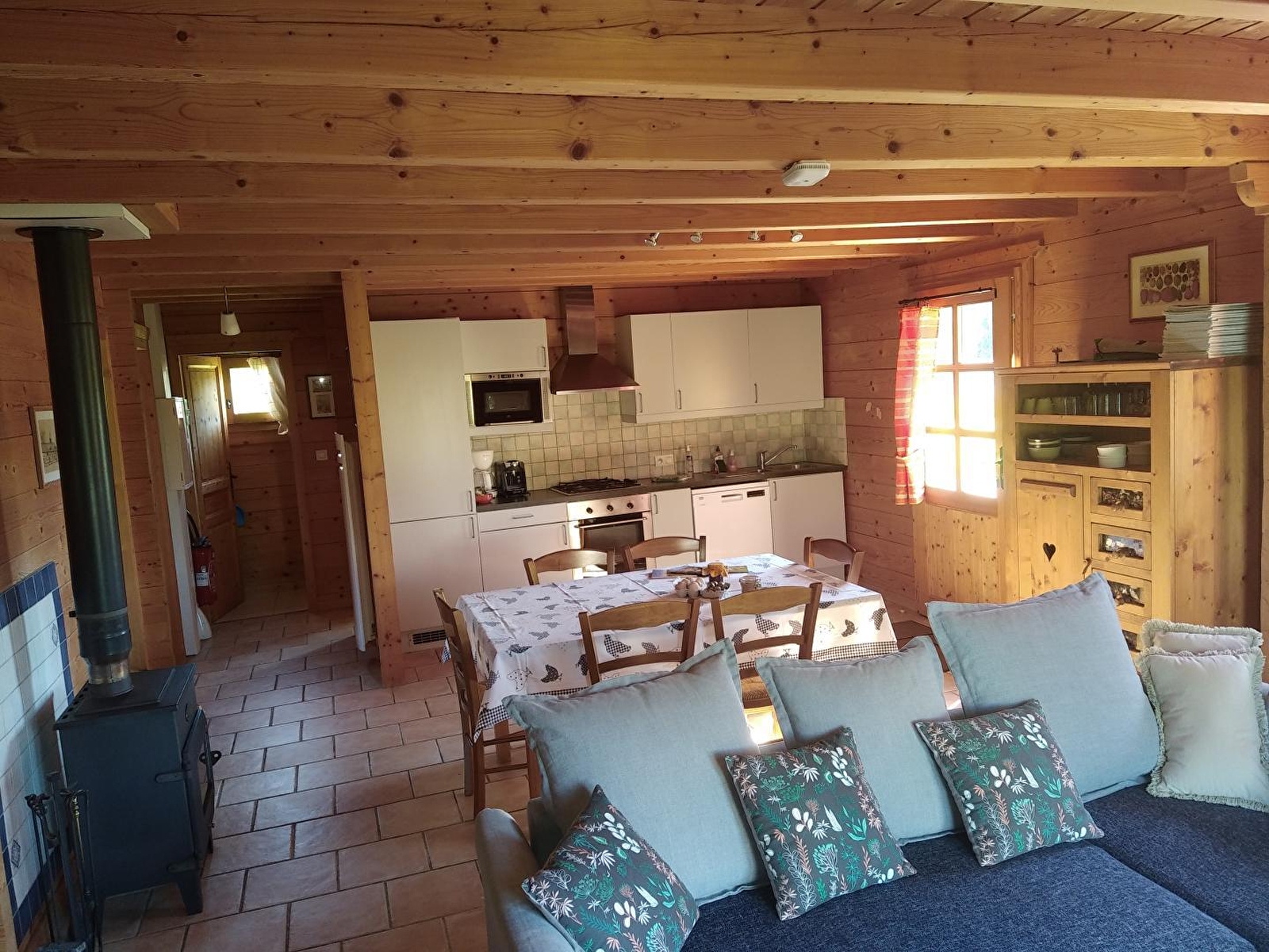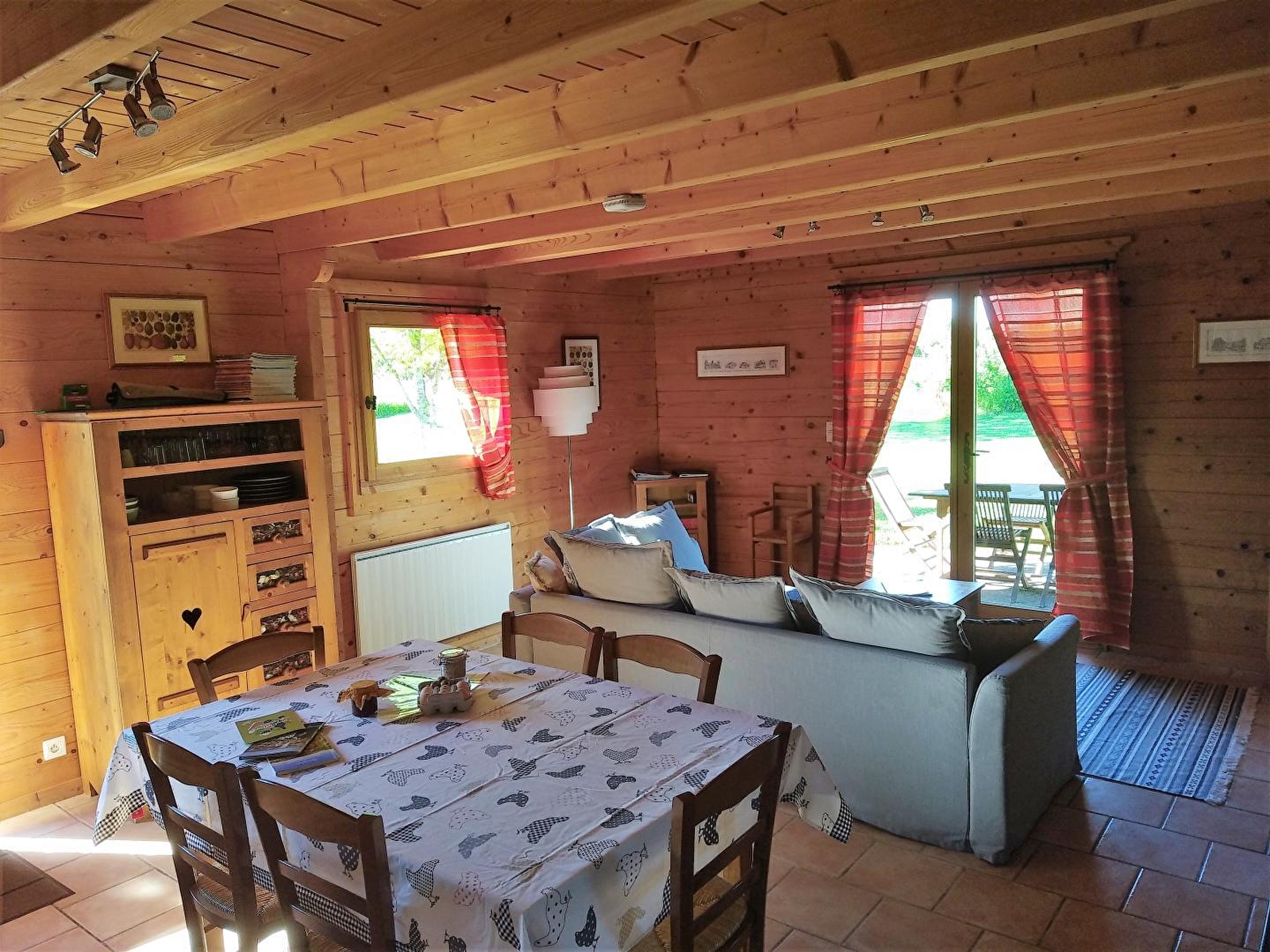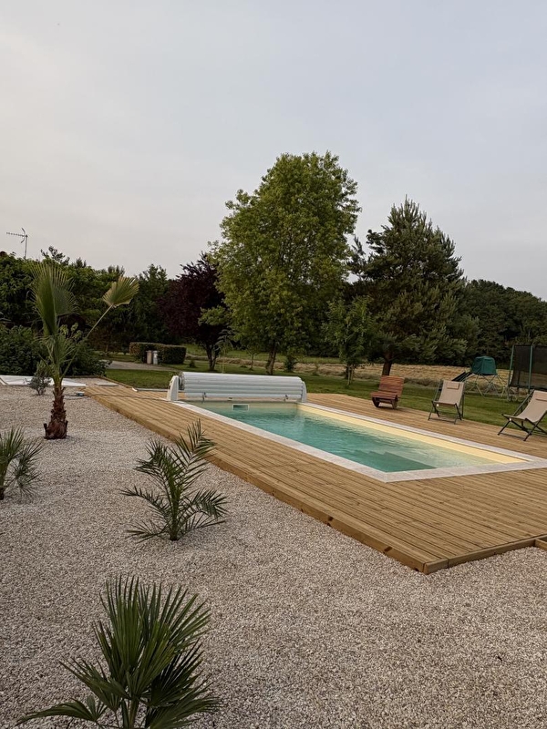 Independent chalet situated in the grounds of a small farm (chickens, ducks, anes). Living room with sofa bed, fully equipped kitchenette, microwave, freezer, DVD/CD player, shower room, separate WC, bedroom 1: 1 double bed, bedroom 2: 2 single beds, bedroom 3: 2 single beds, baby equipment, electric heating, wood stove. Courtyard, terrace, garden, enclosed park, garden furniture, barbecue, above-ground wooden swimming pool with terrace, owners' swimming pool available: above-ground wooden pool and terrace (shared with the owners and another gîte), petanque court. Free WIFI. For your greater comfort, this gîte is all-inclusive: beds made on arrival, towels and household linen provided, cleaning included, tourist tax included. Private fishing pond, 600m from the gîtes, reserved for your use and free of charge.